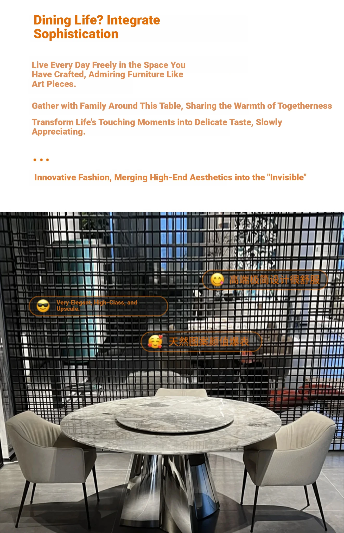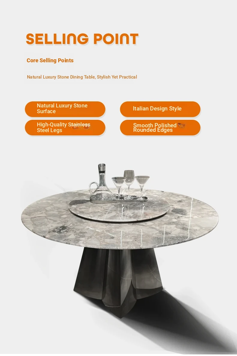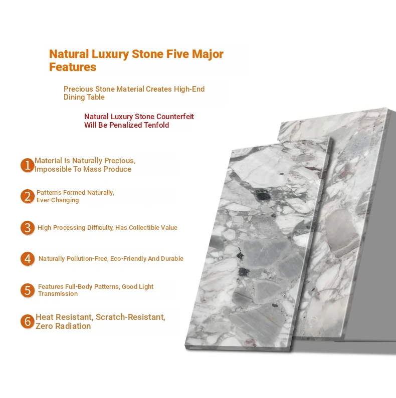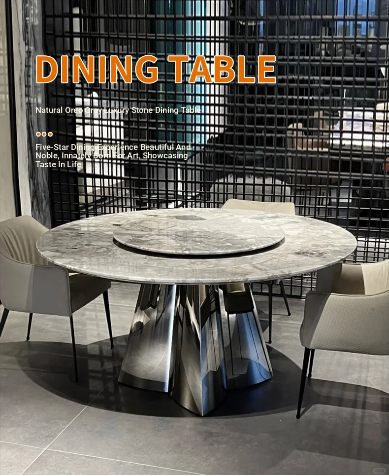1.5+35.43 in Natural Oreo Grey Luxury Stone Dining Table (Ten for Fake)