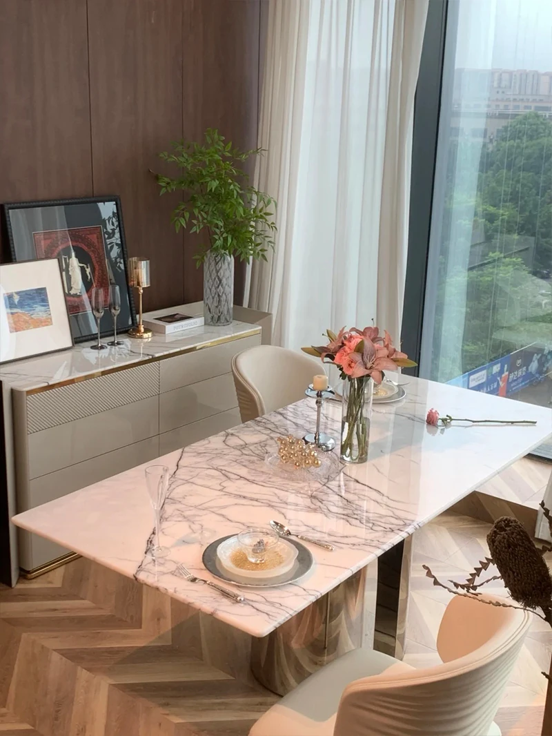 94.49in*39.37ins +6 chairs fragrant snow plum luxury stone dining table (fake a penalty of 10)