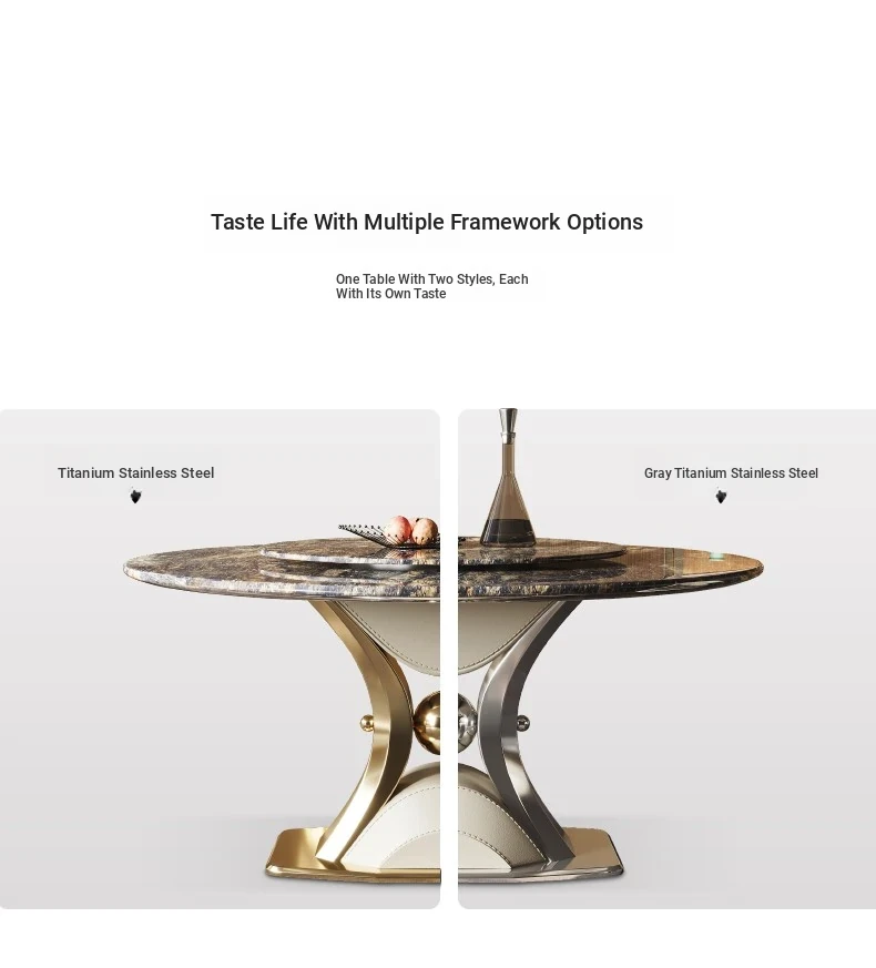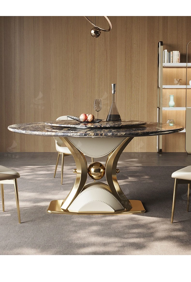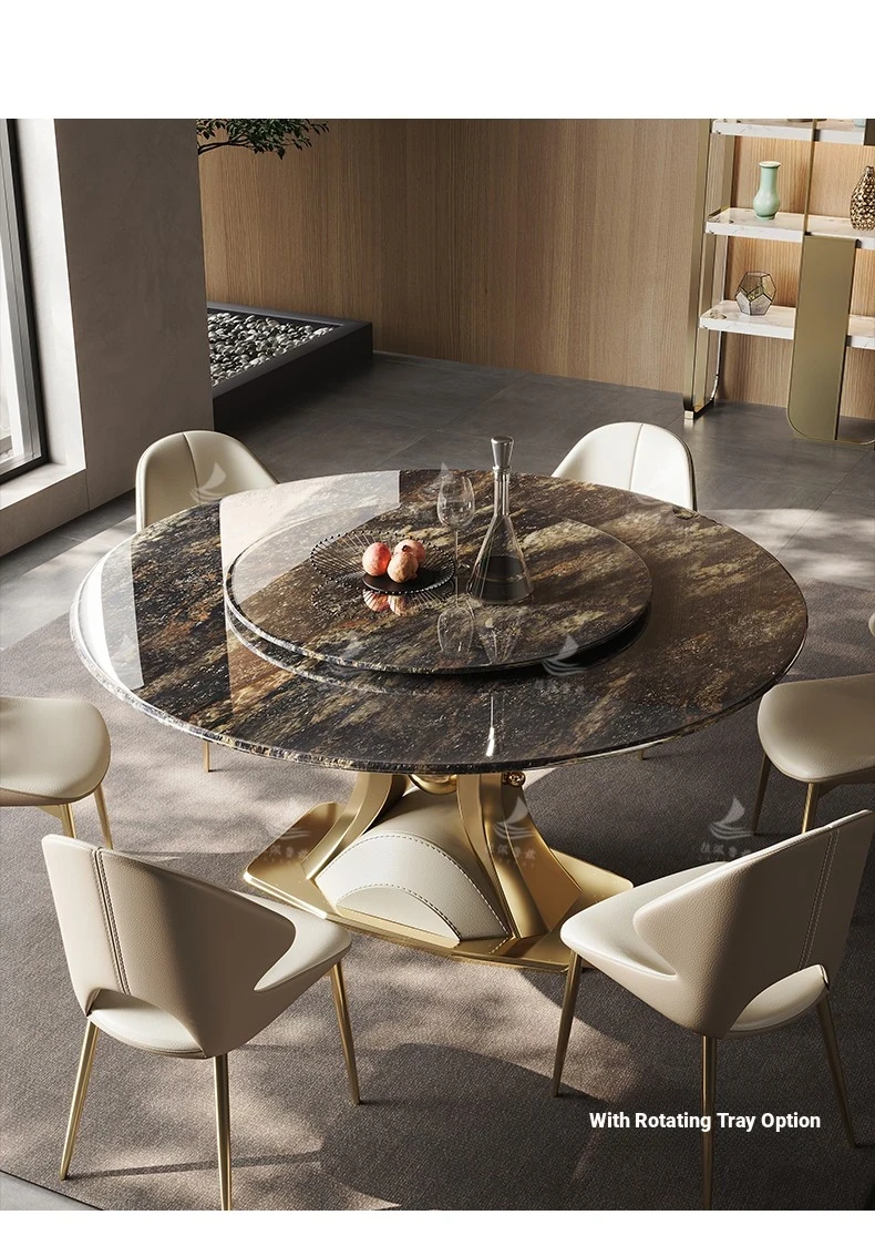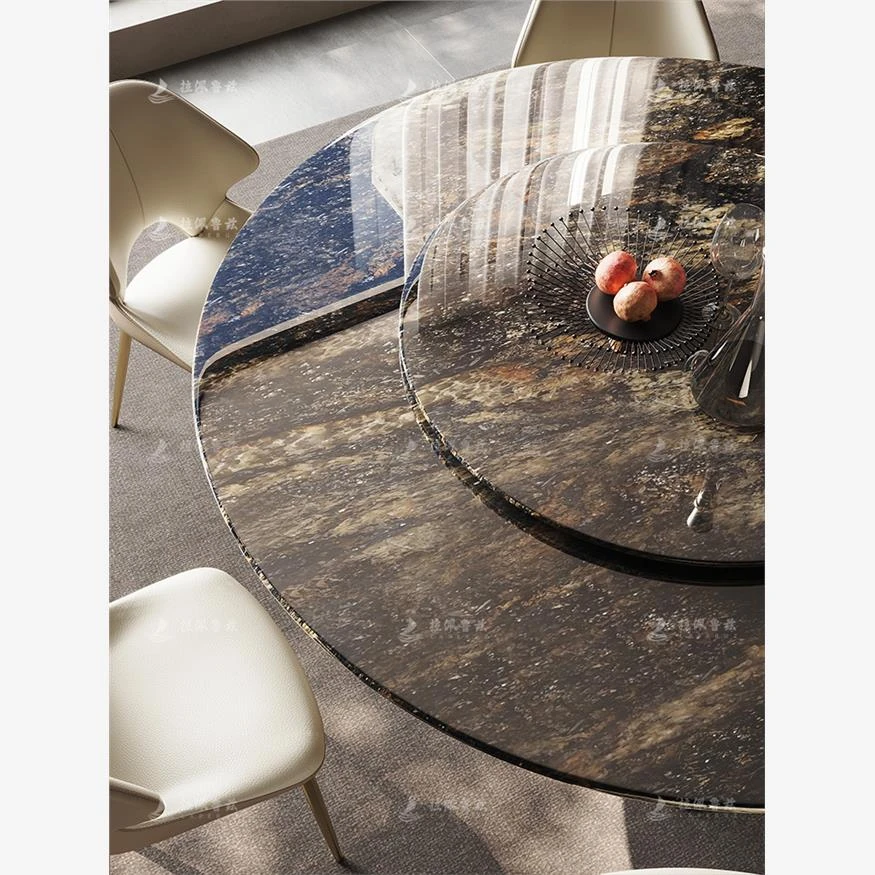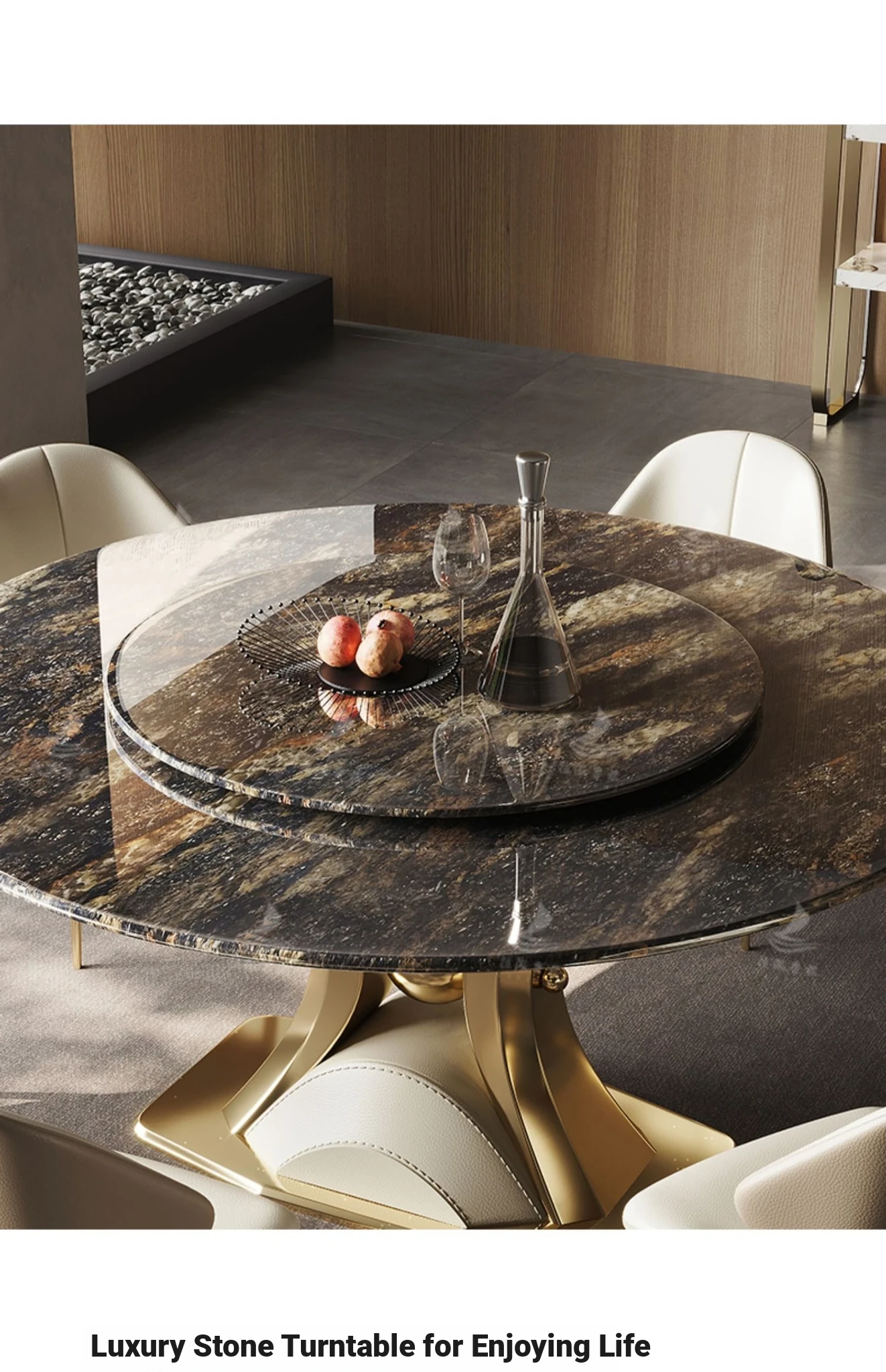 Platinum Diamond Natural Luxury Stone Dining Table-With Turntable