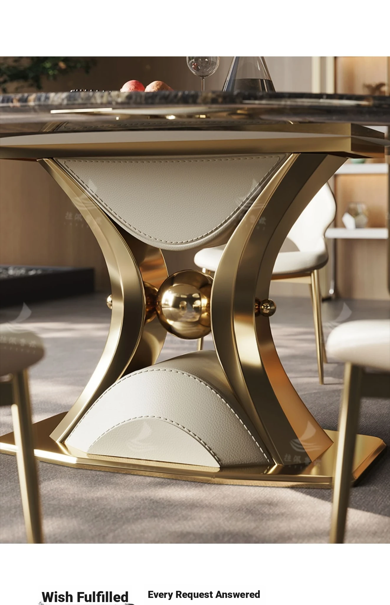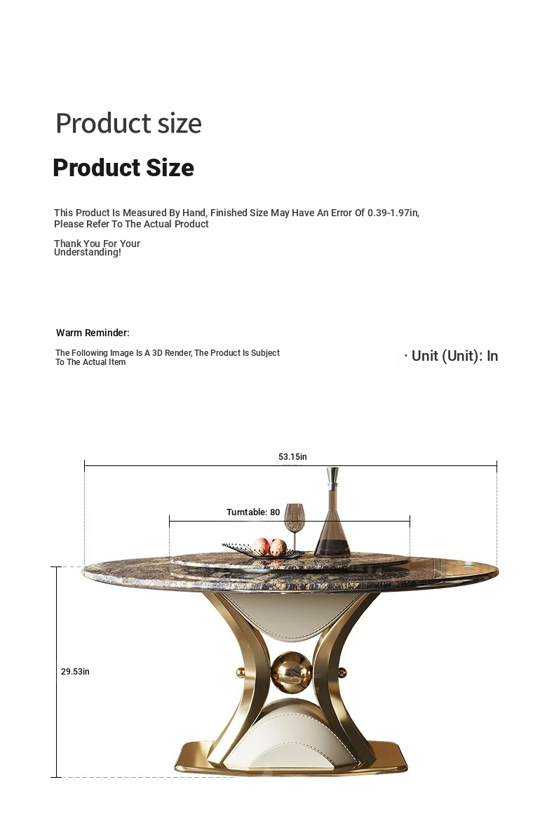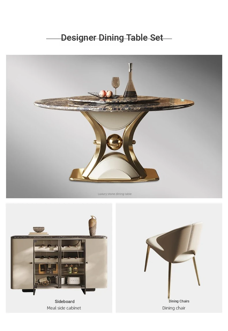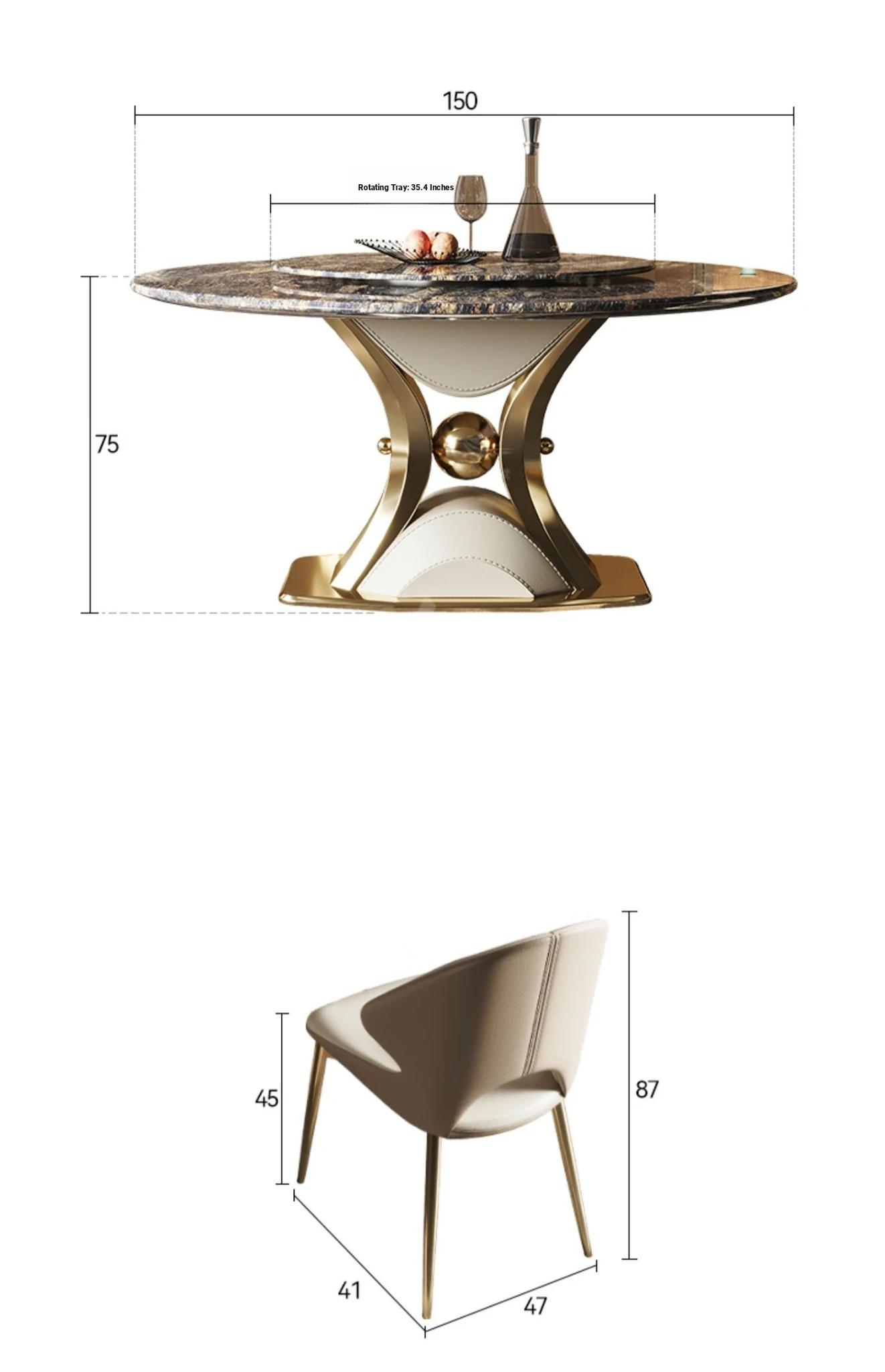 Platinum Diamond Natural Luxury Stone Dining Table-With Turntable