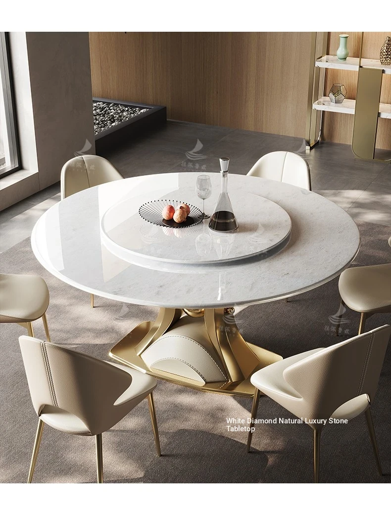 White Diamond Natural Luxury Stone Dining Table-With Turntable