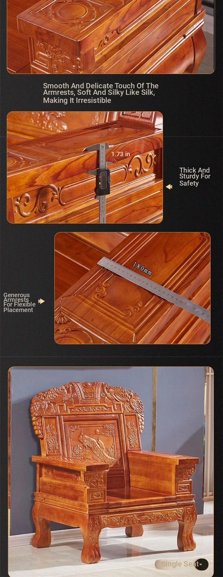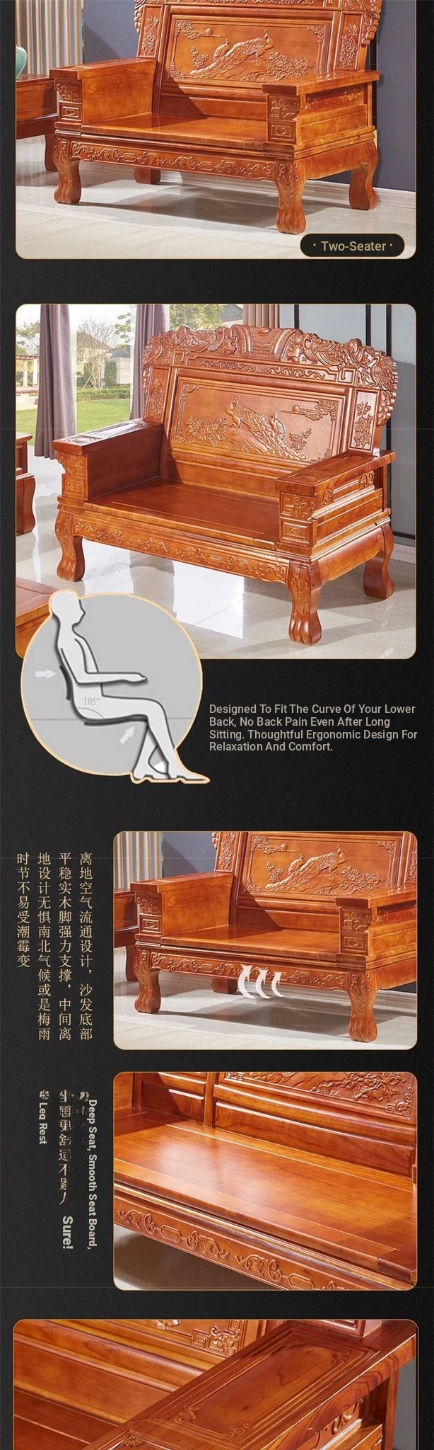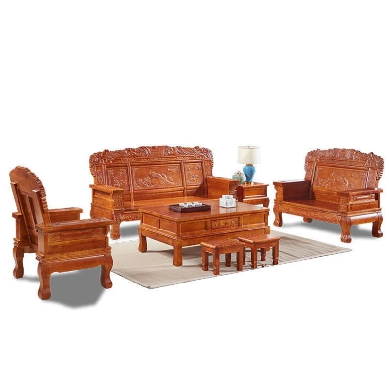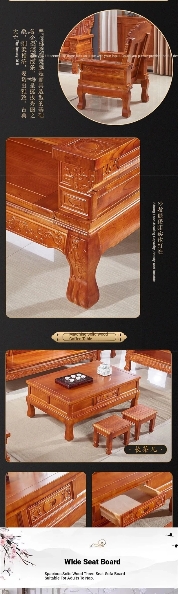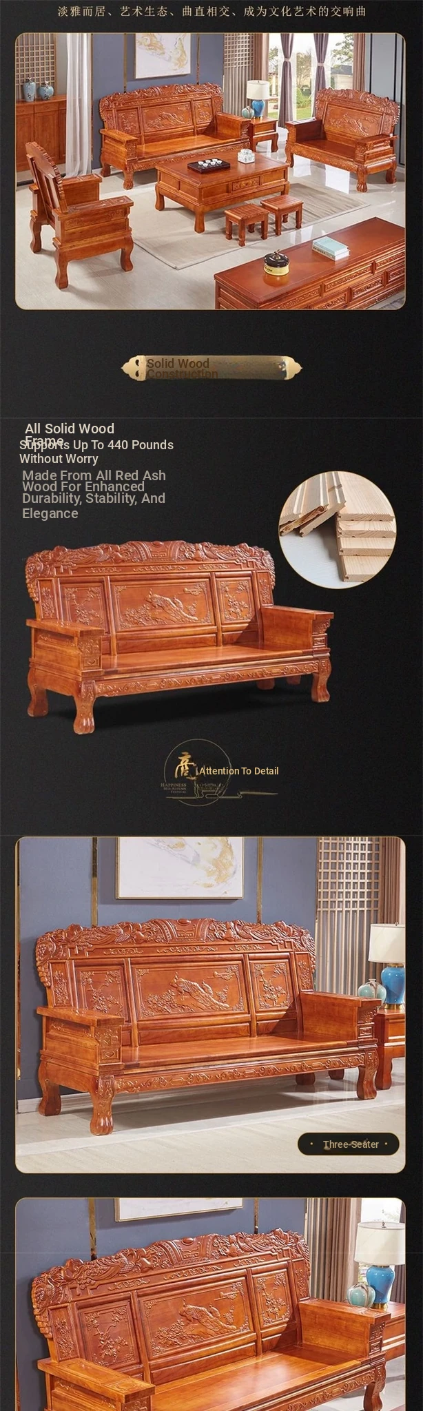 Luxury Solid Wood Sofa Set - Pineapple Wood for Spacious Living Rooms, Featuring Red Camphor and Camphor Wood. Perfect for Rural and Large Homes!