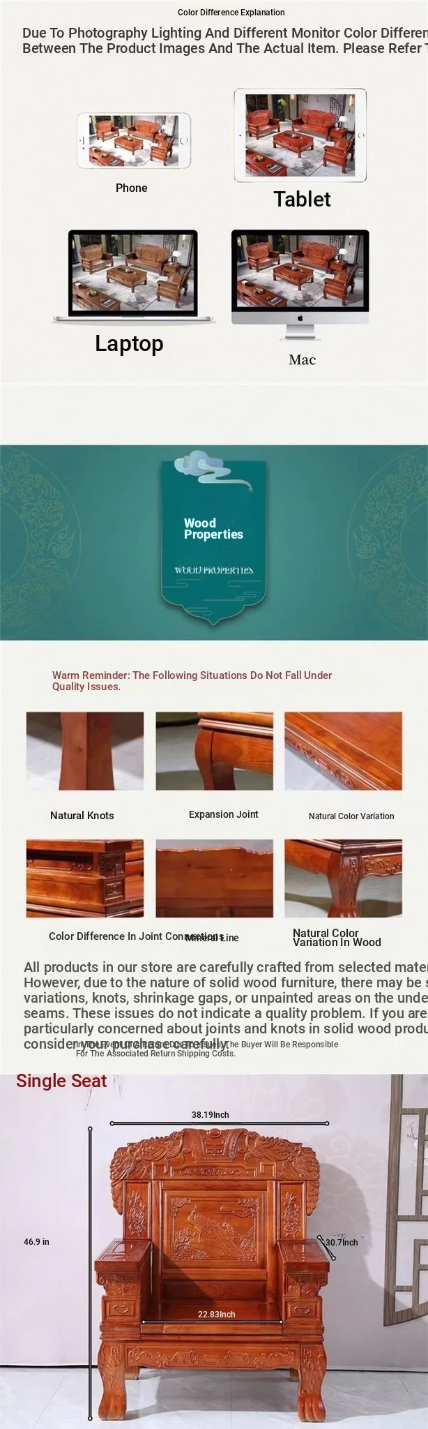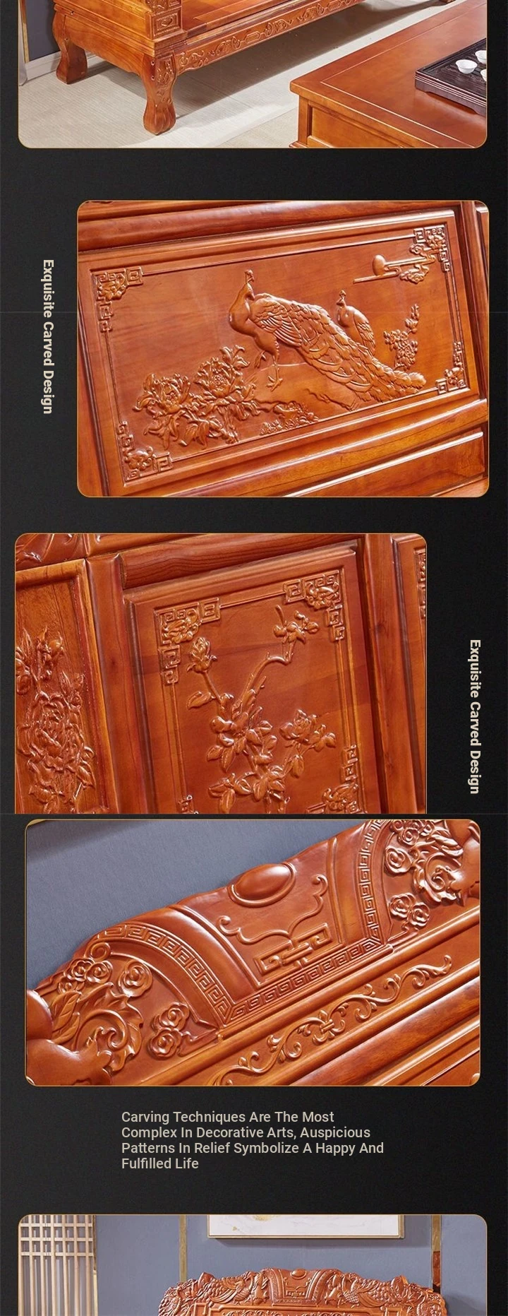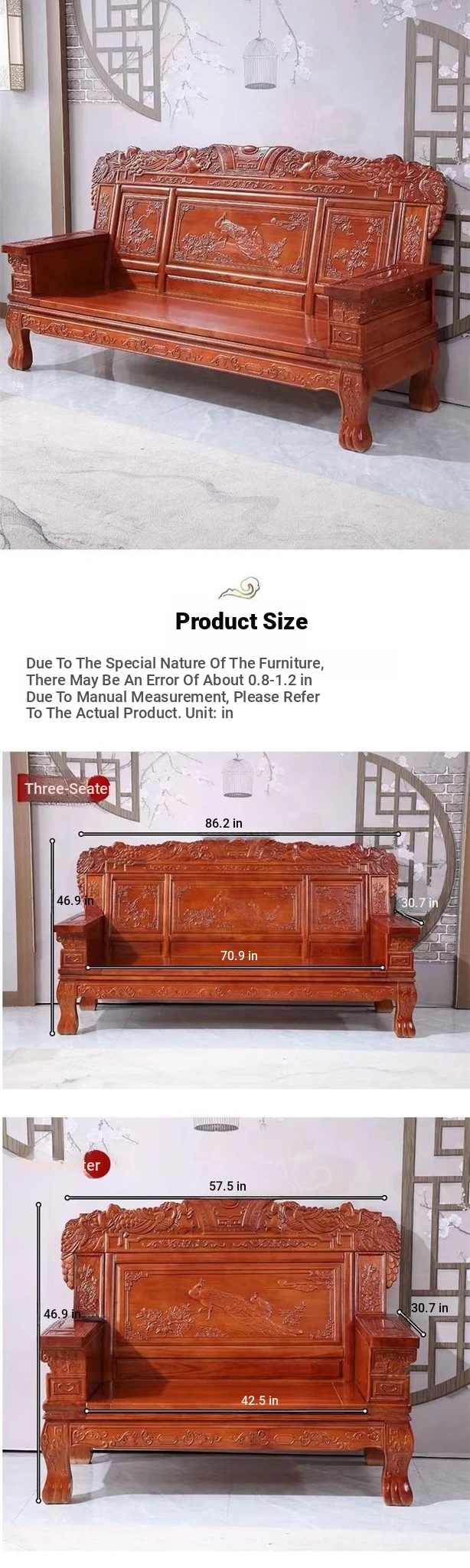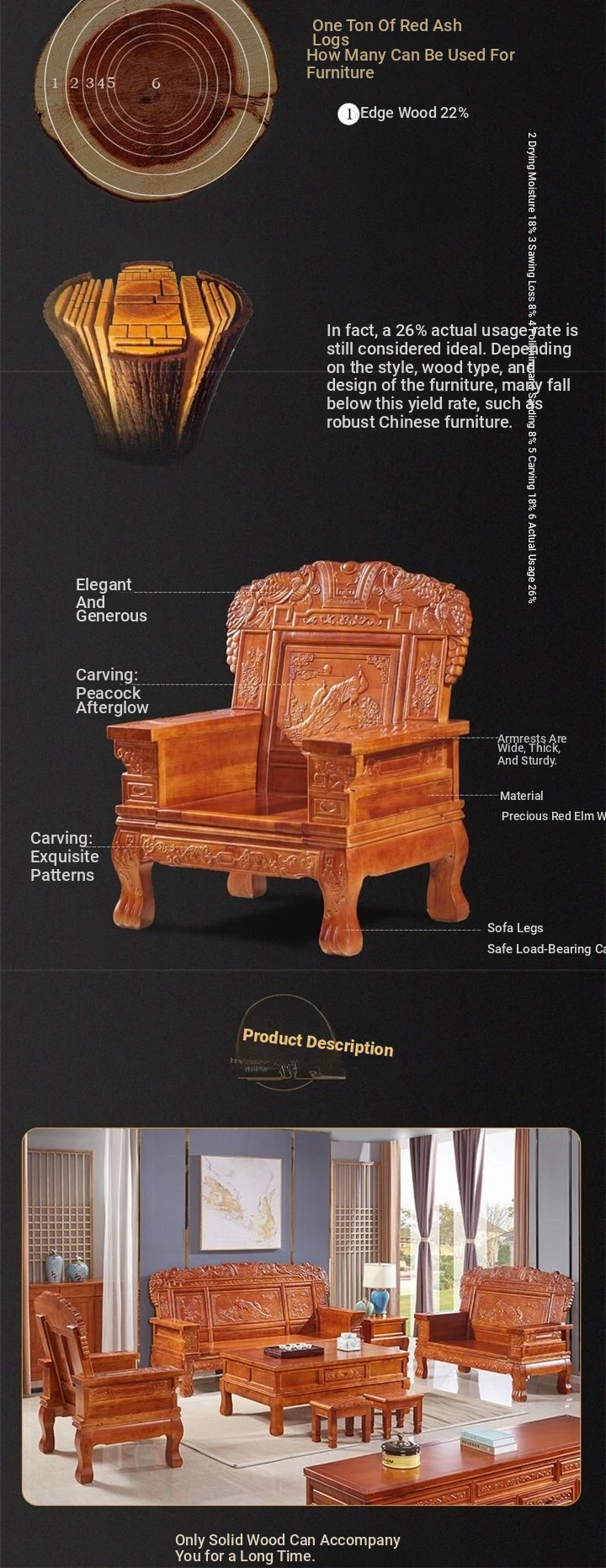 Luxury Solid Wood Sofa Set - Pineapple Wood for Spacious Living Rooms, Featuring Red Camphor and Camphor Wood. Perfect for Rural and Large Homes!
