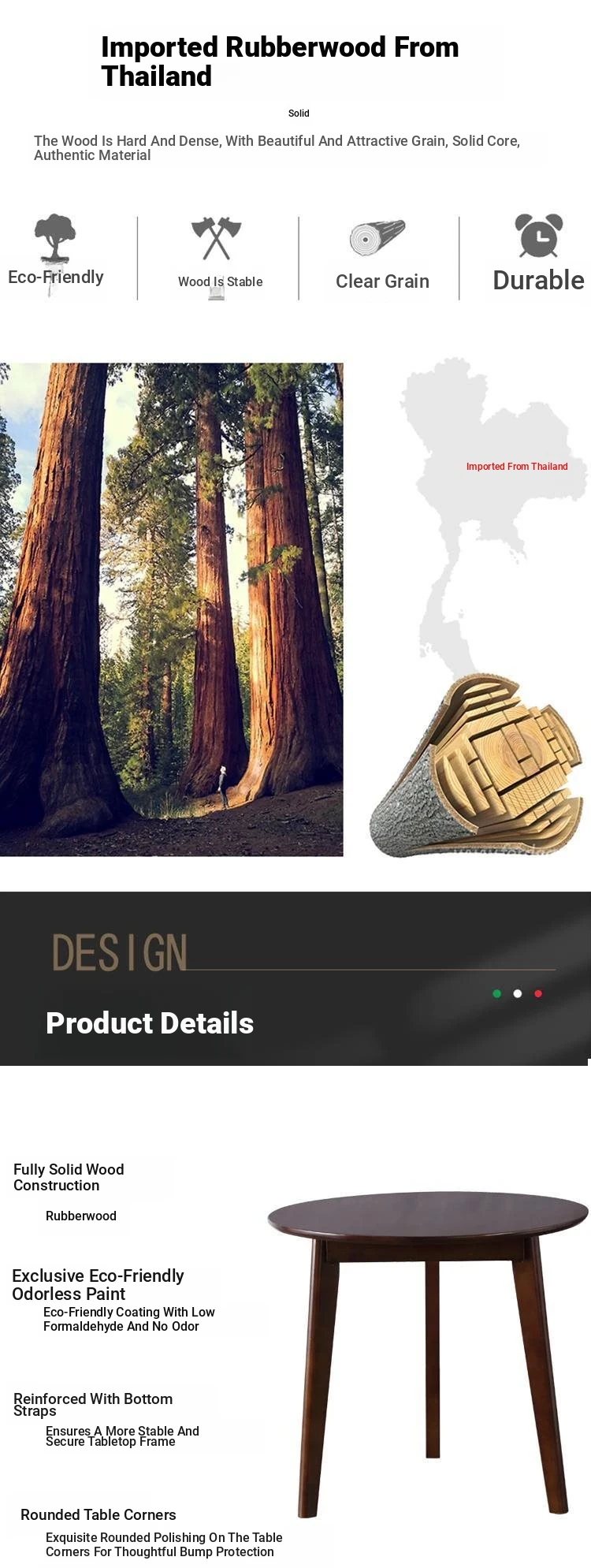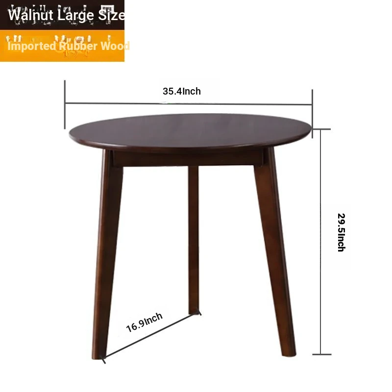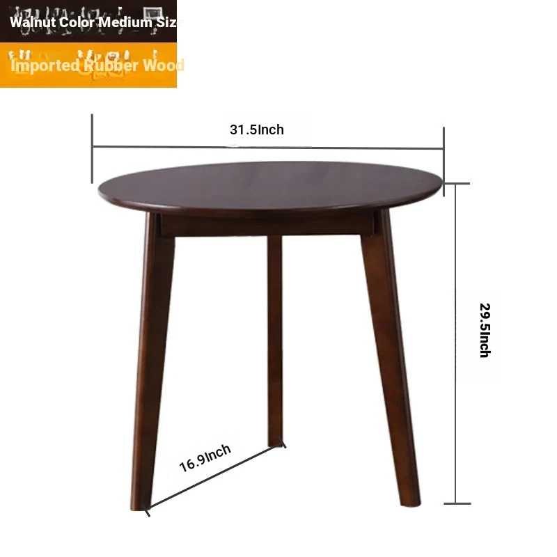 One table and three chairs walnut color (diameter 23.62in) all solid wood