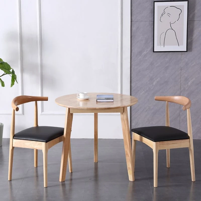 One table and two chairs log color (diameter 23.62in) all solid wood