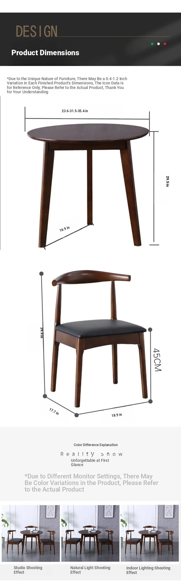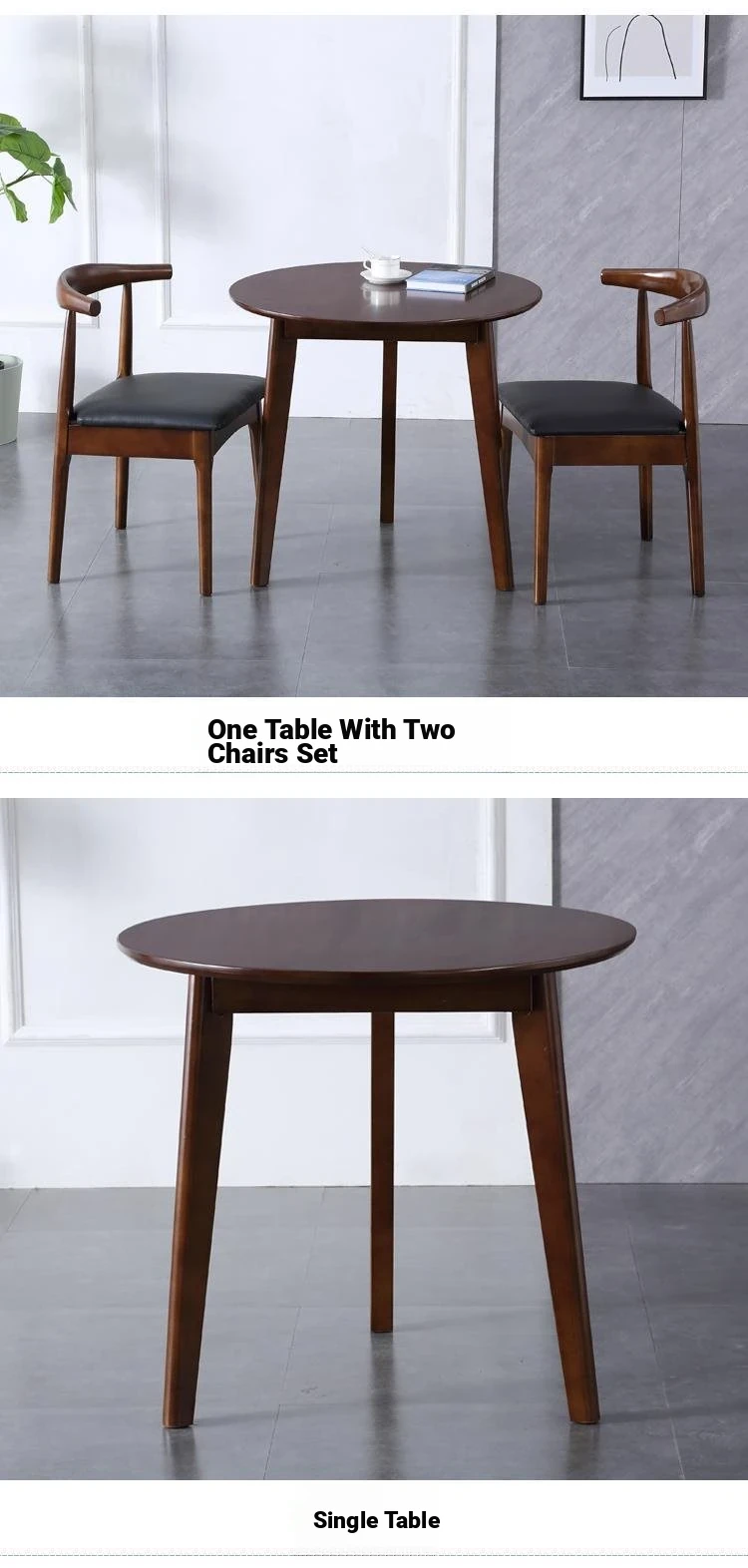 One table and two chairs walnut color (diameter 23.62in) all solid wood