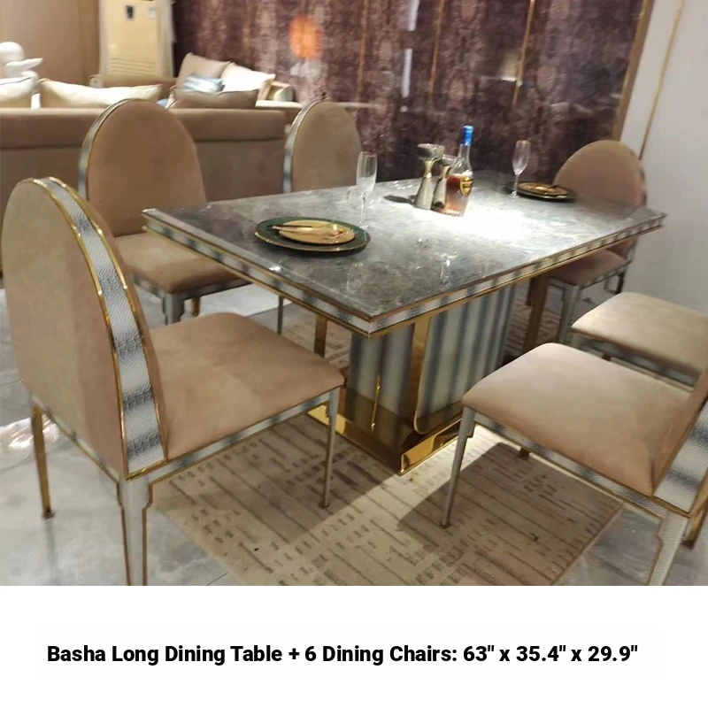 Basha long dining table [1.6*0.9] +6 dining chairs
