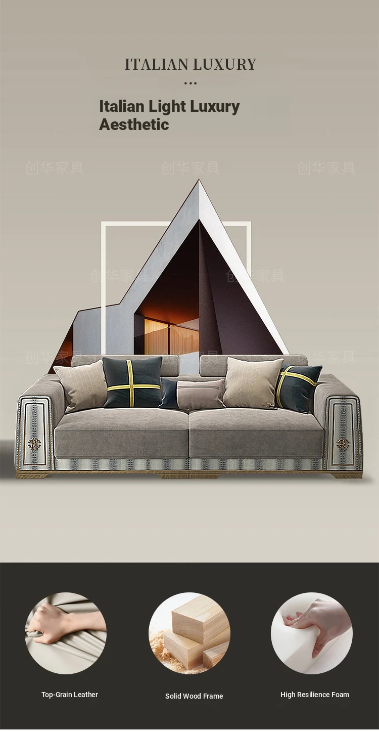 Modern Italian Luxury Genuine Leather Sofa - High-End Bashia Collection for Living Room, Villa, and Large Spaces - Designer Minimalist Furniture