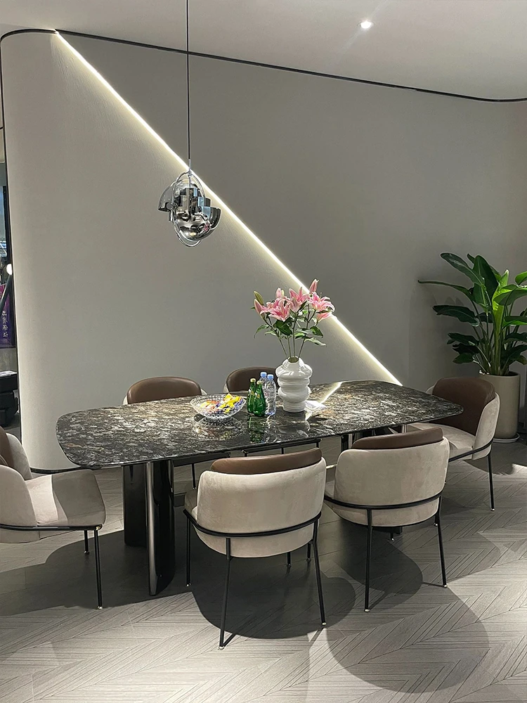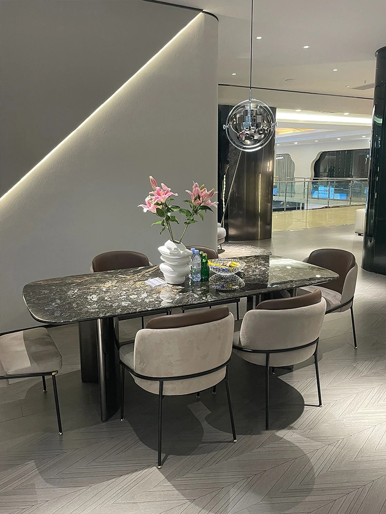 55.12in*31.50in +6 Chair Platinum Diamond Luxury Stone Dining Table (10 for Fake)