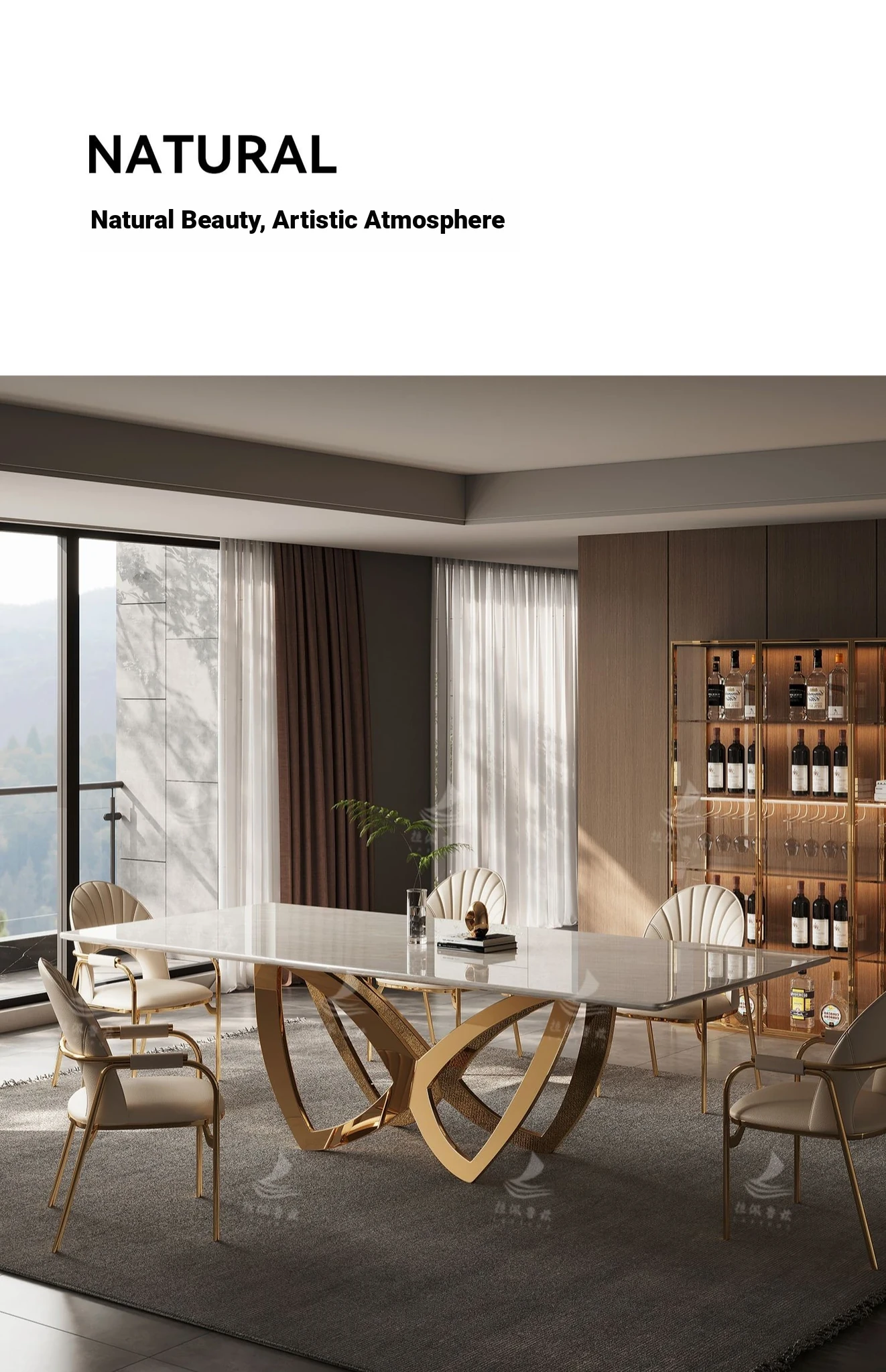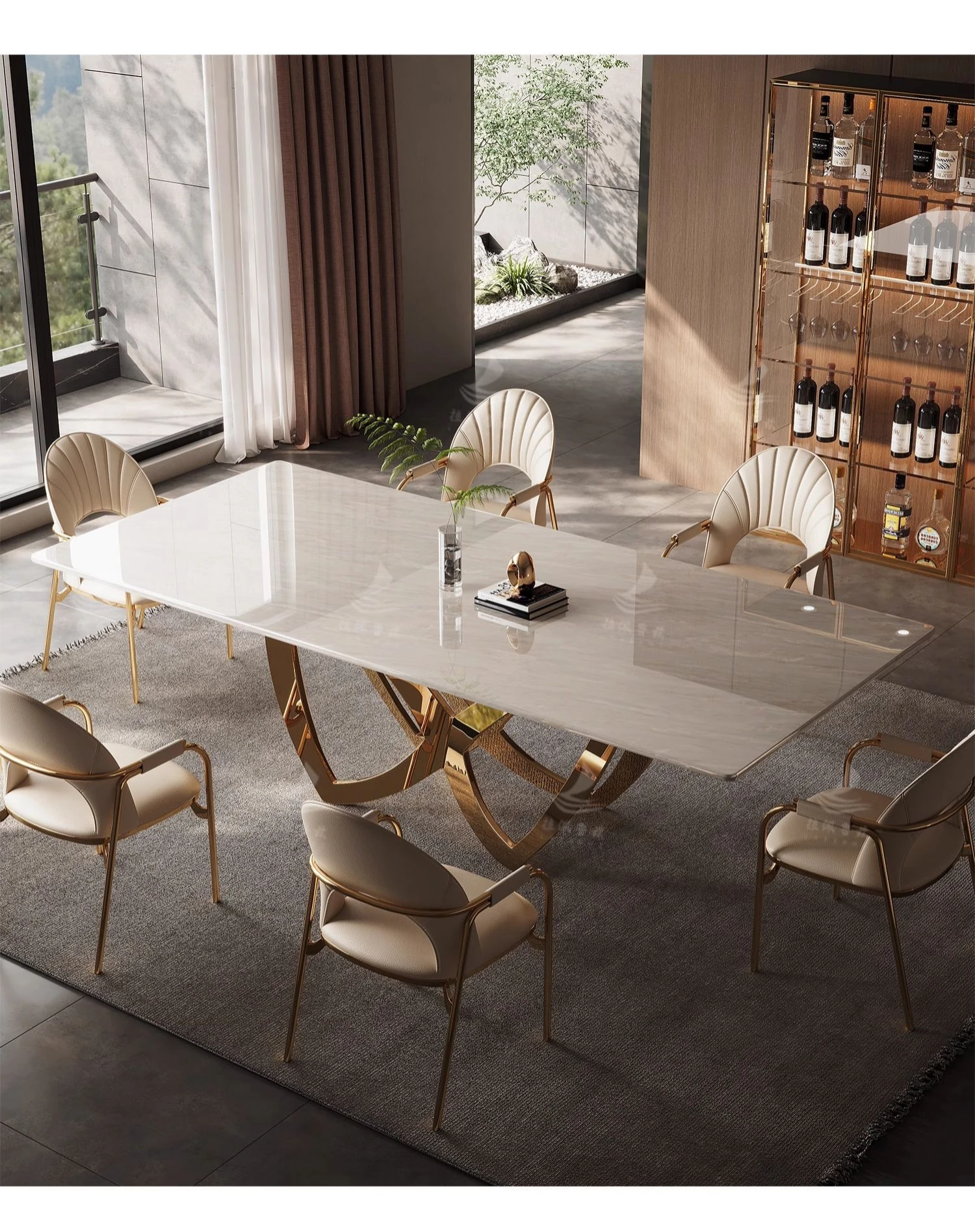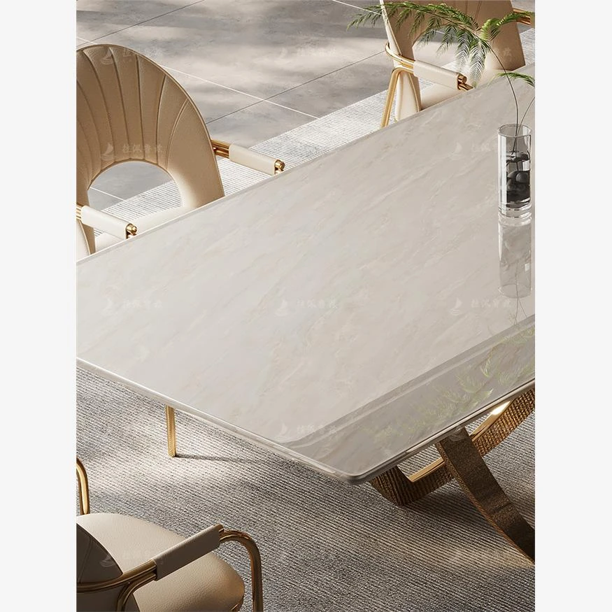 Modern Minimalist Luxury Natural Marble Dining Table - Soft Decoration Complete Solution for High-End Villas, 2024 New Rectangular Design.