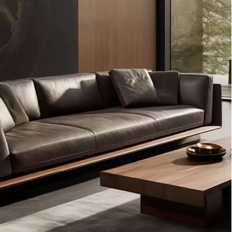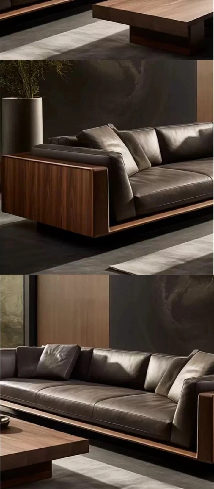 Modern Minimalist New Chinese Style American Black Walnut Sofa - High-End Genuine Leather Three-Seat Couch for Luxurious Living Rooms