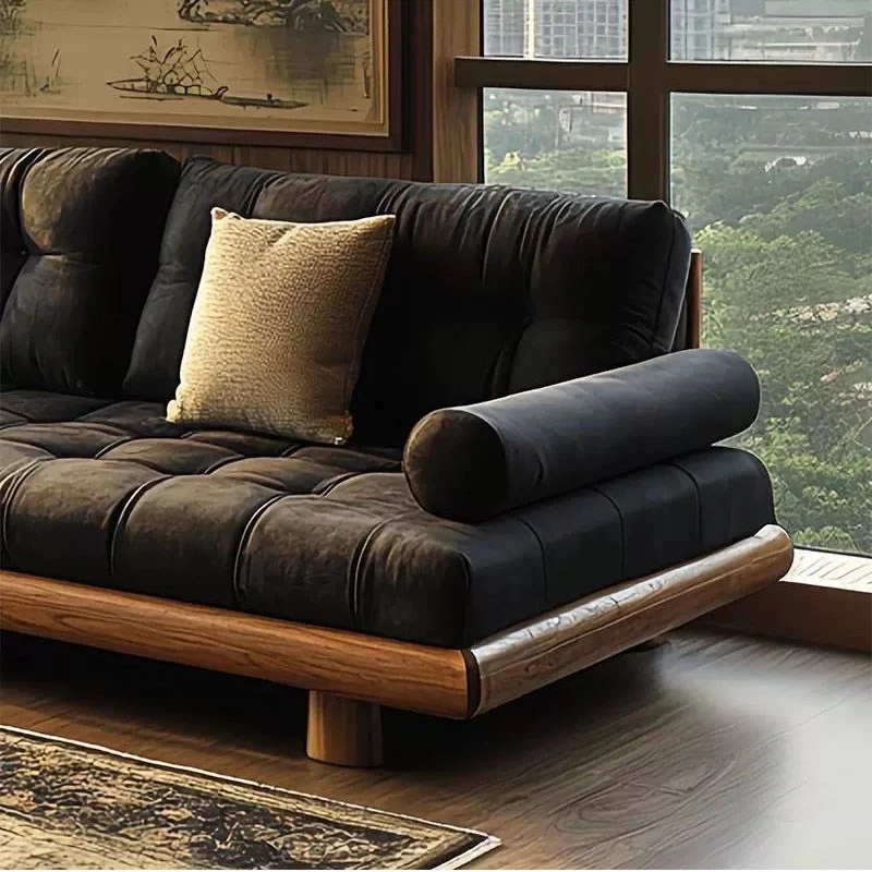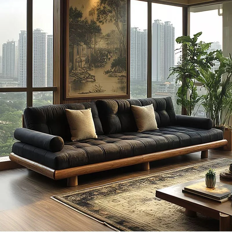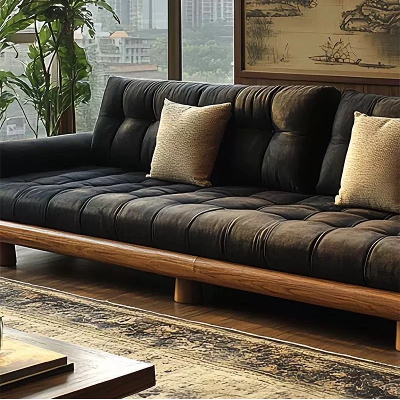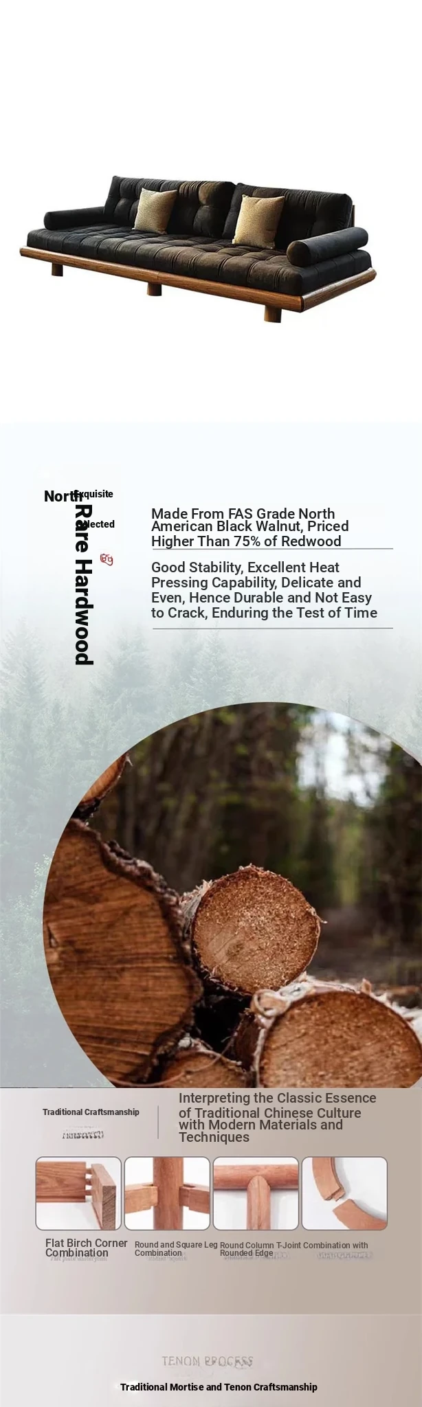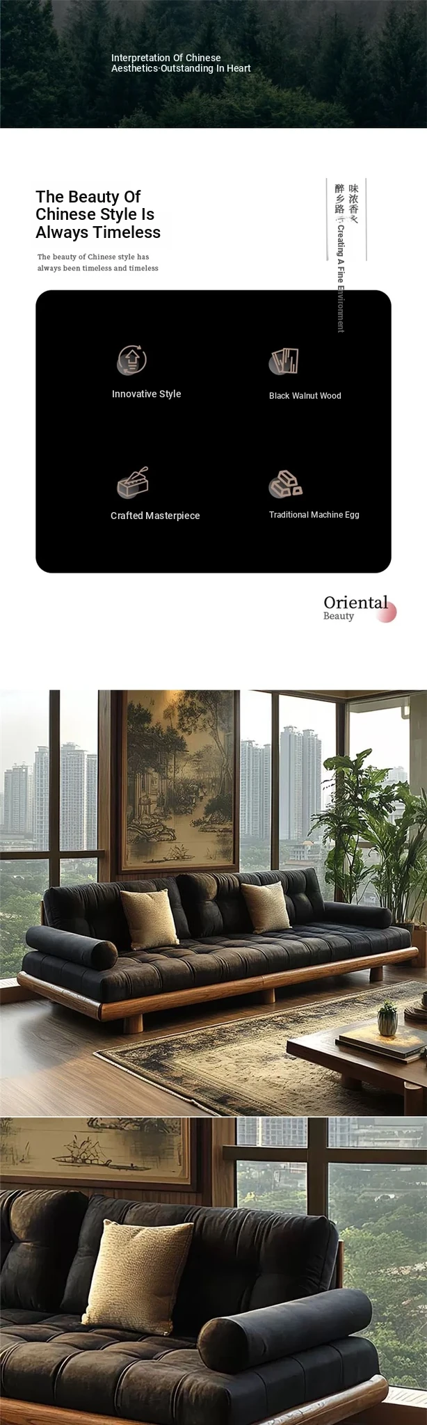 Modern Minimalist New Chinese Style Solid Wood E-Sofa Set – Ideal for Villa Showrooms and Contemporary Living Rooms, Zen-Inspired Ash Wood Sofa