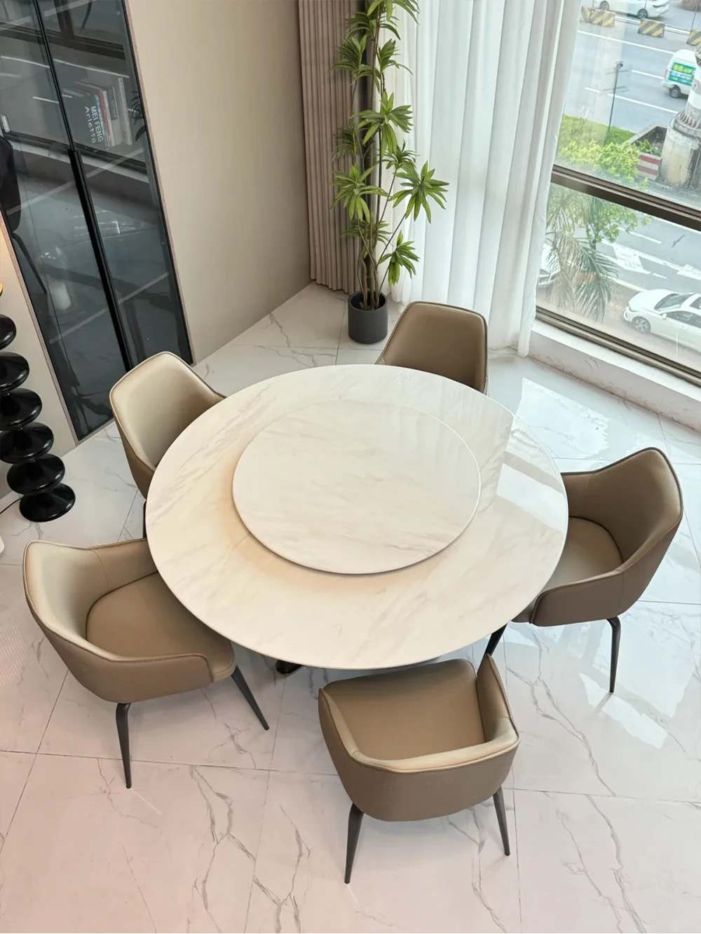 1.2+23.62 in +4-chair jazz white luxury stone dining table (10 for one fake)