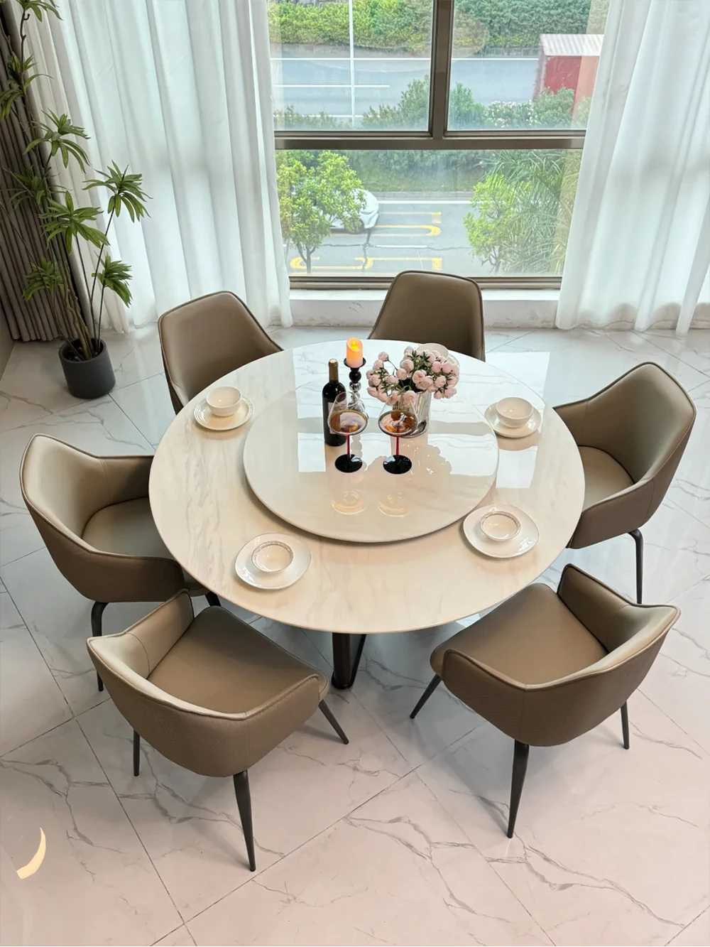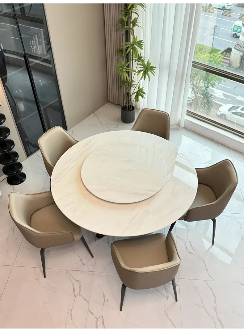 1.5+35.43 in +6 Chair Jazz White Luxury Stone Dining Table (10 for Fake)