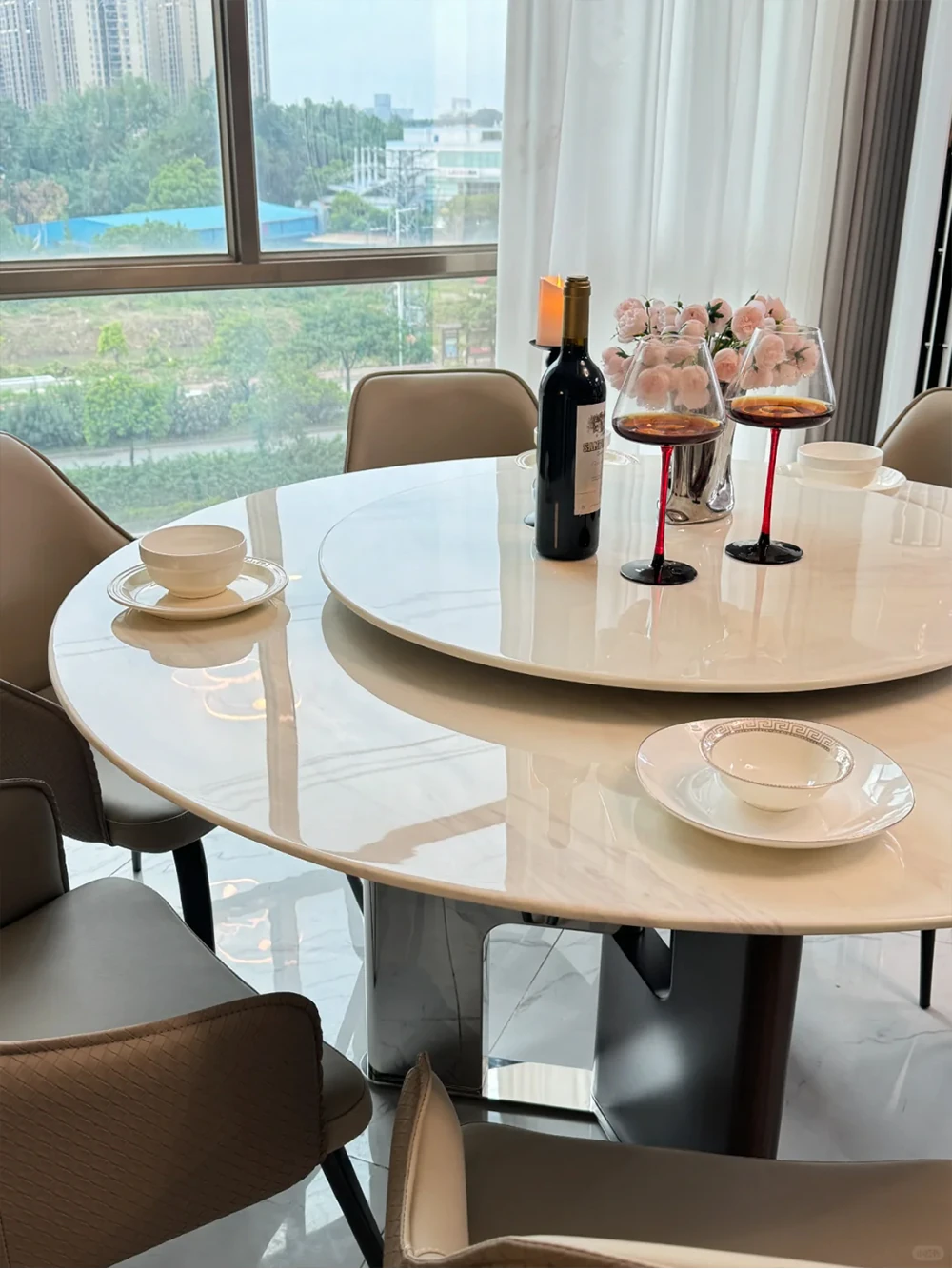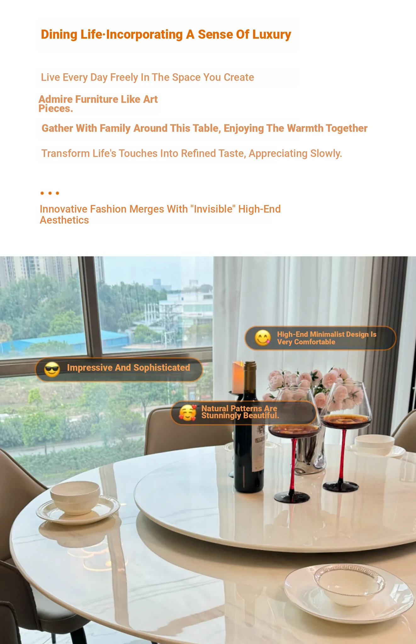 1.35+29.53 in Natural Jazz White Luxury Stone Dining Table (10 for Fake)