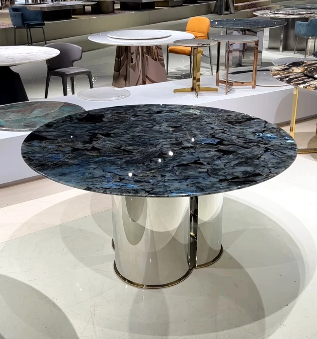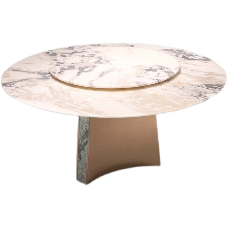 Natural Kary Ice Jade Marble Luxury Dining Table - Modern Minimalist Round Table with Rotating Tray for Home, Villa, and Spacious Living Areas