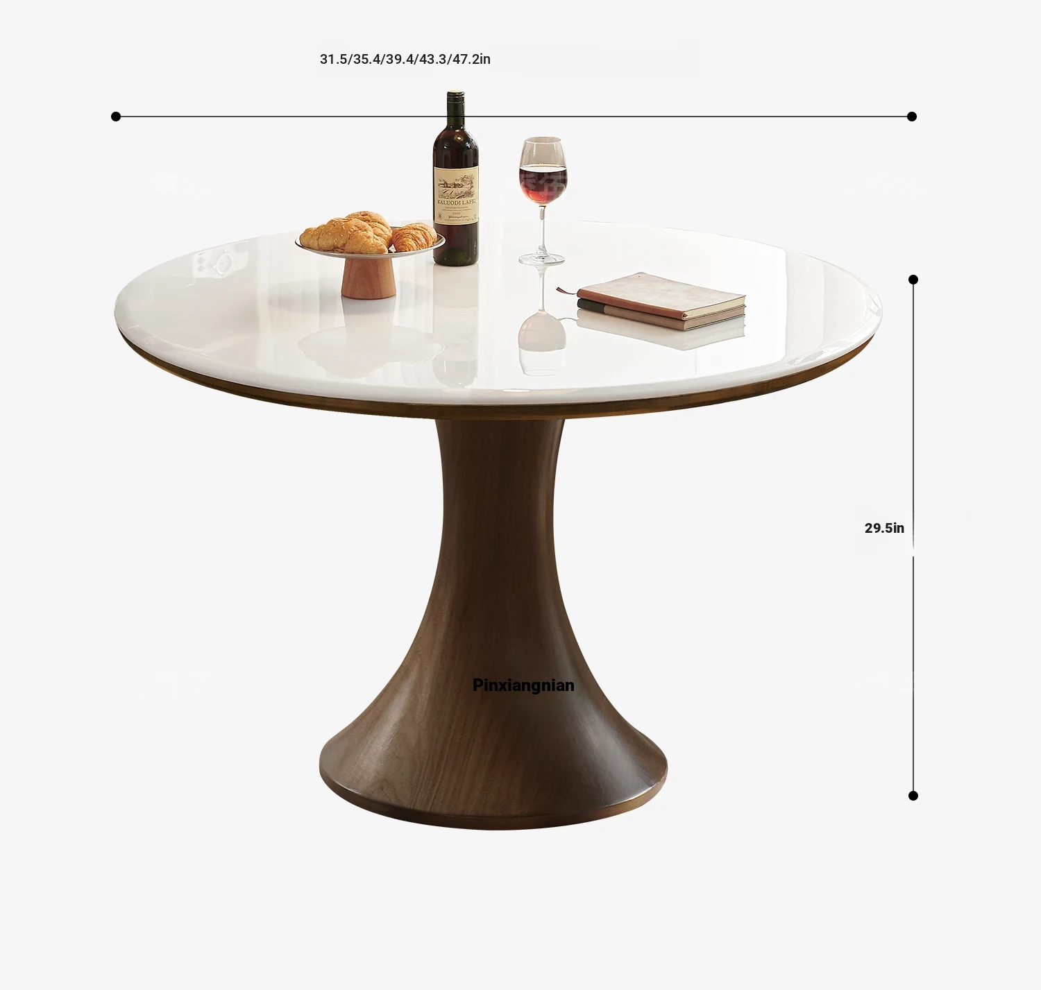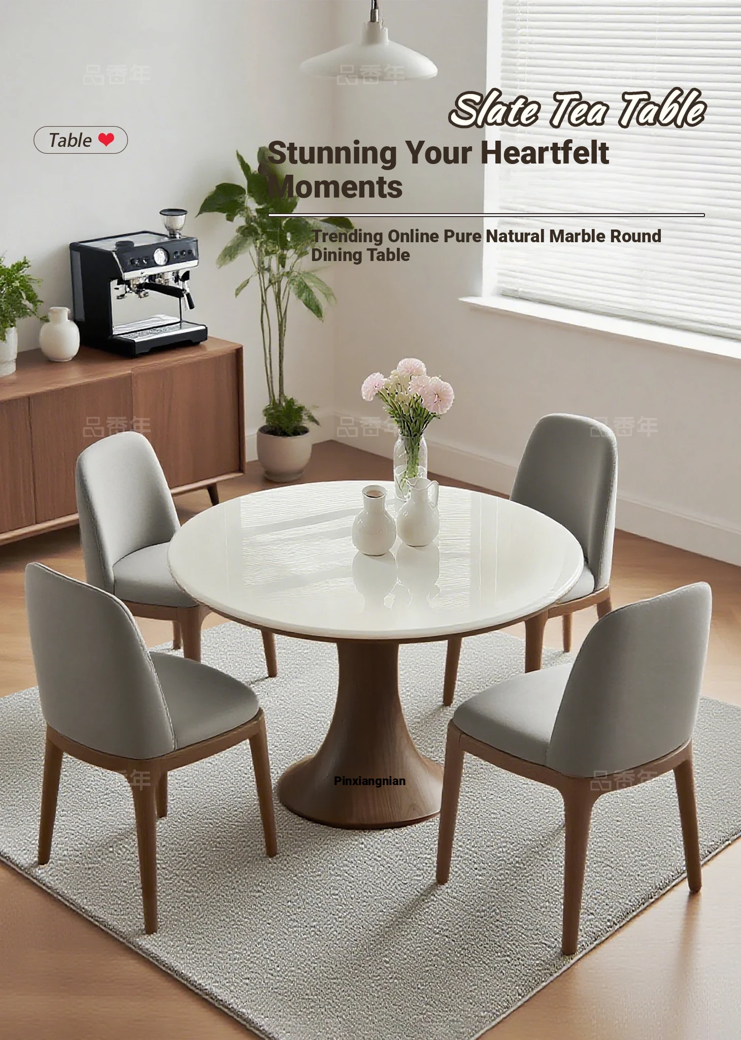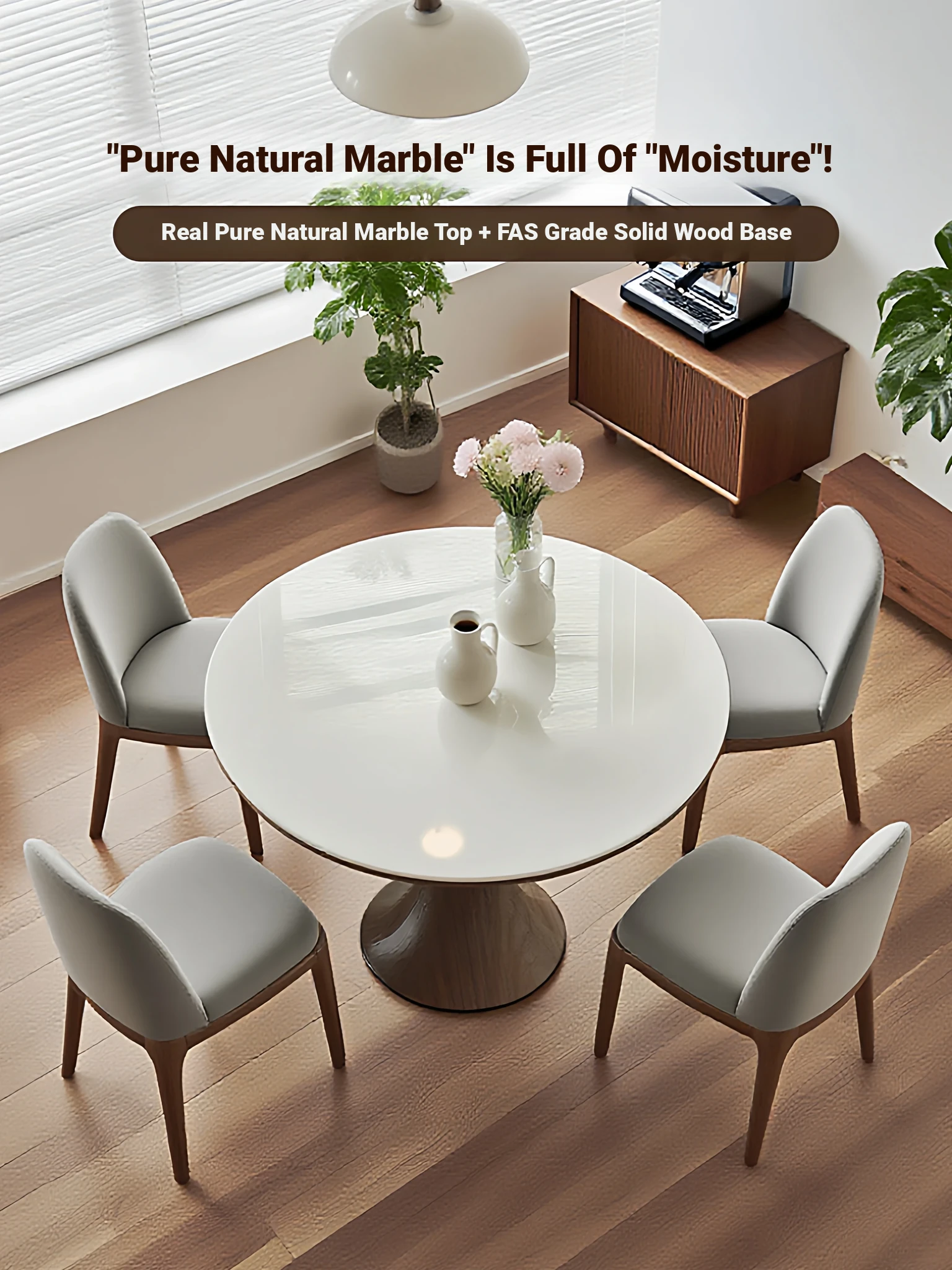 [Real natural marble all solid wood round table] Designer professional recoinend advance payment