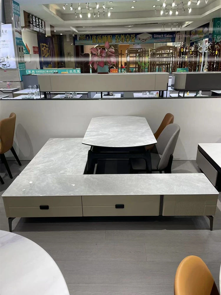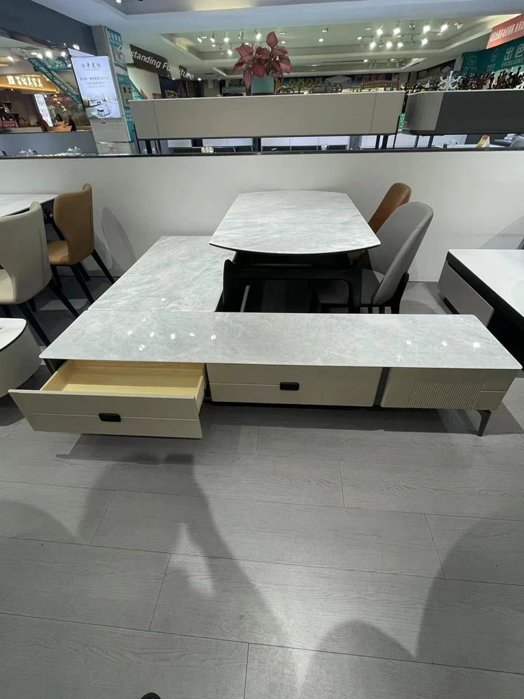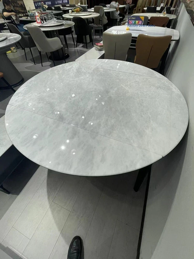 Natural Microcrystalline Marble Dining Table and Chair Set - Modern Minimalist Round Folding Multifunctional Table for Small Spaces, Perfect for Home Use