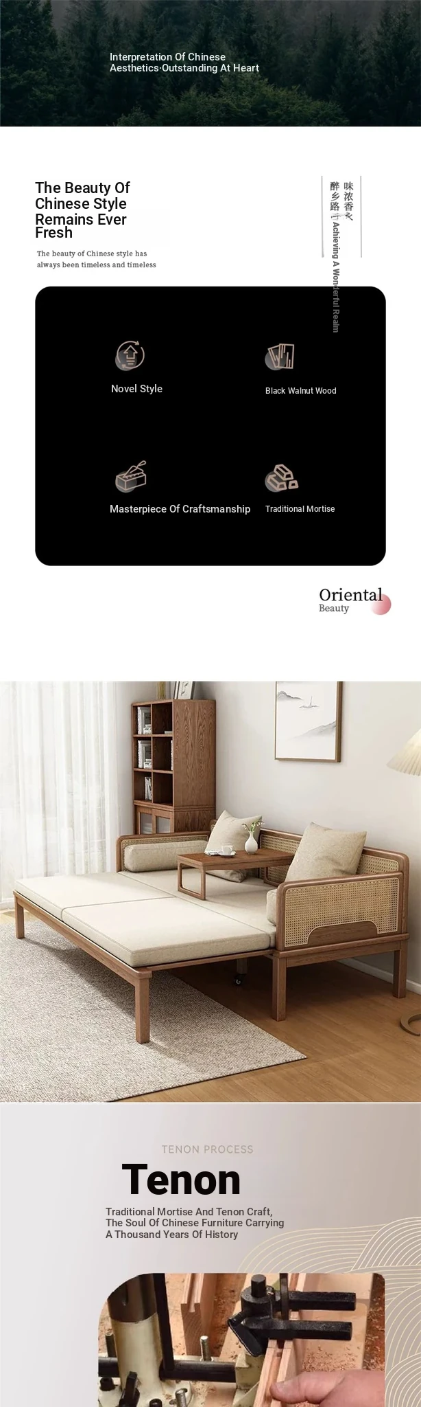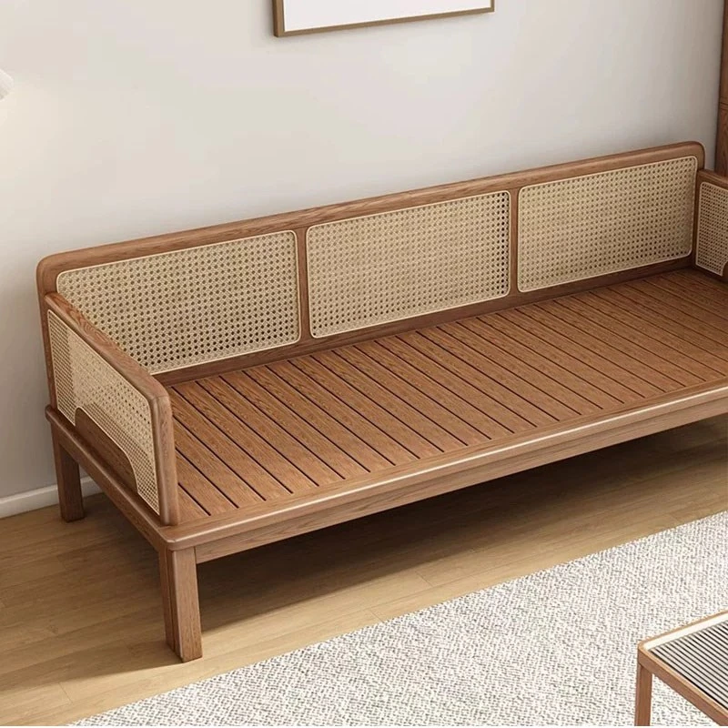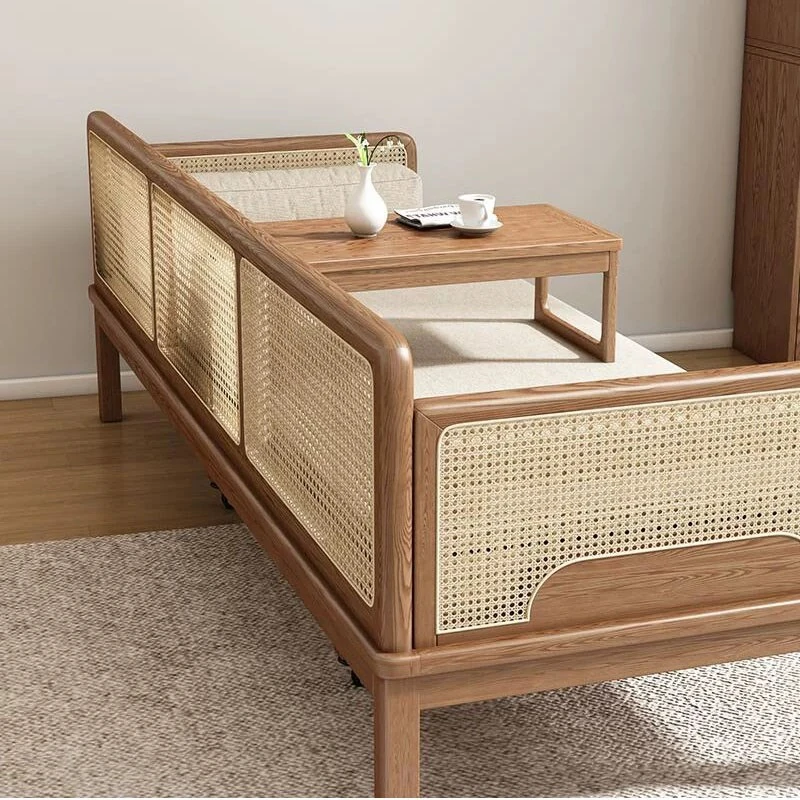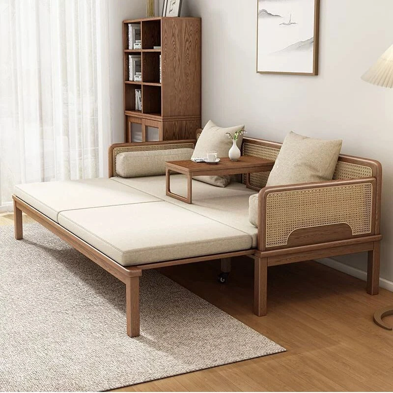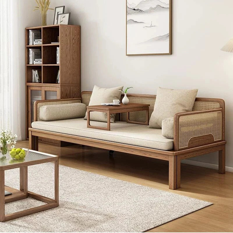 New Chinese Style Luohan Bed Sofa - White Ash Wood, Pull-Out Double Zen Seating, Practical Sliding Furniture, Model 20S25 - Perfect for Modern Living Spaces!