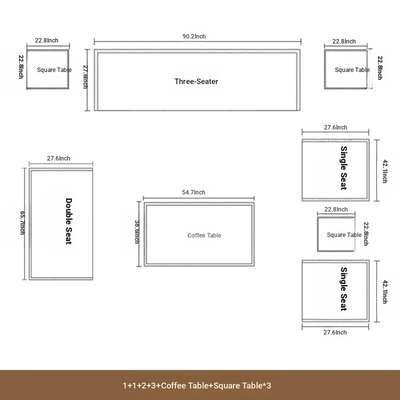 E35-1123 + coffee table + square * 3 + TV cabinet