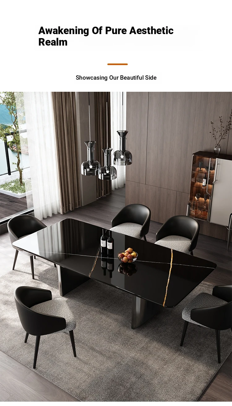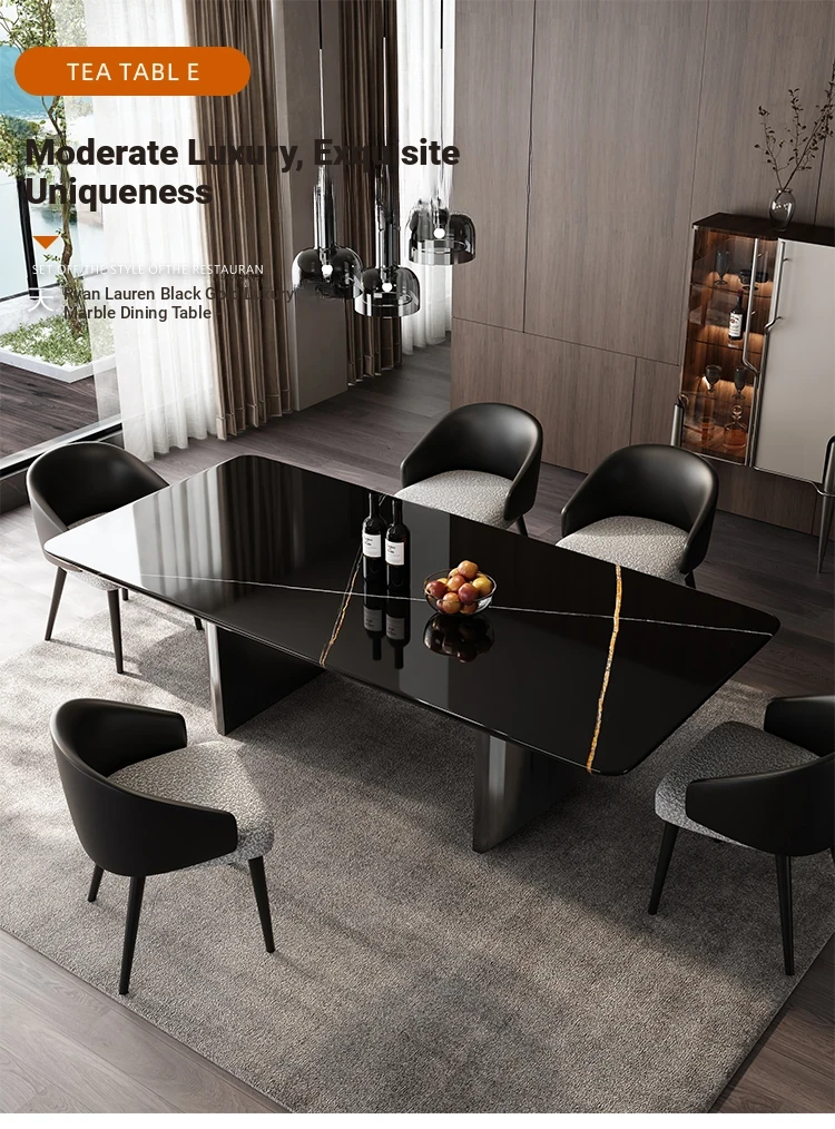 94.49in*39.37in dining table + dining chair * 6/natural luxury stone Lauren black gold