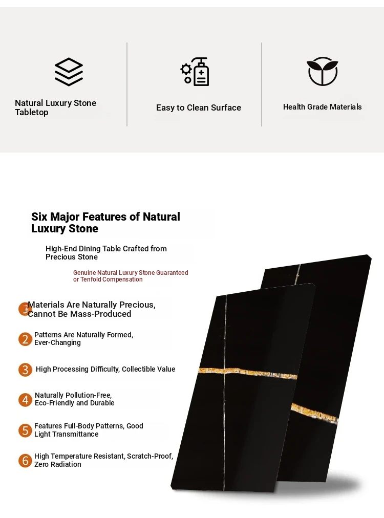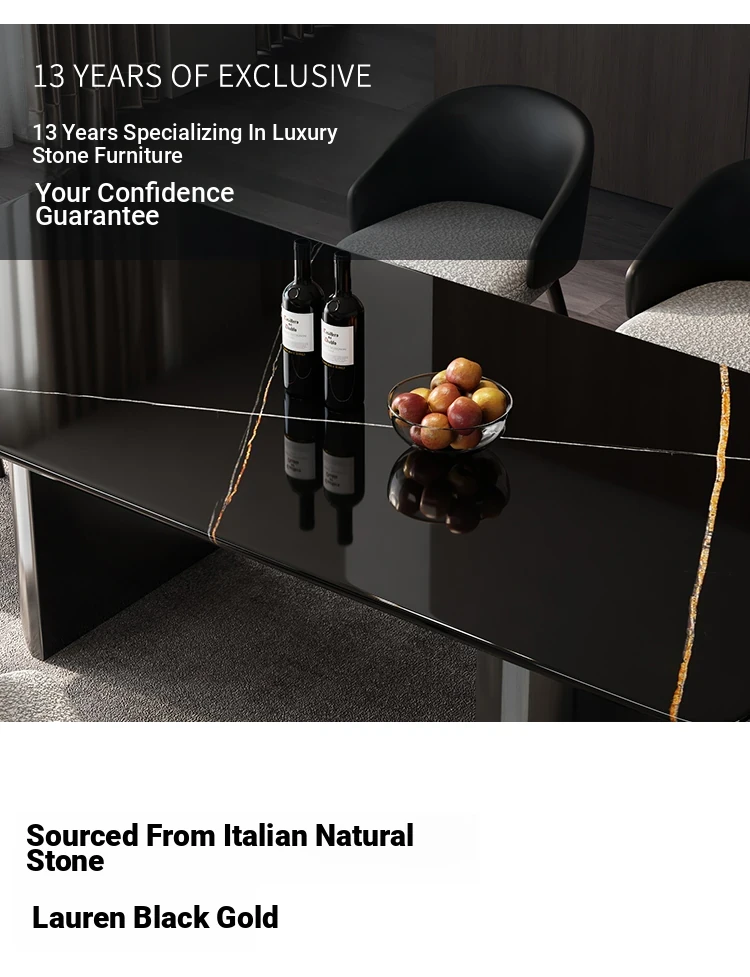 86.61in*39.37in dining table/natural luxury stone Lauren black gold
