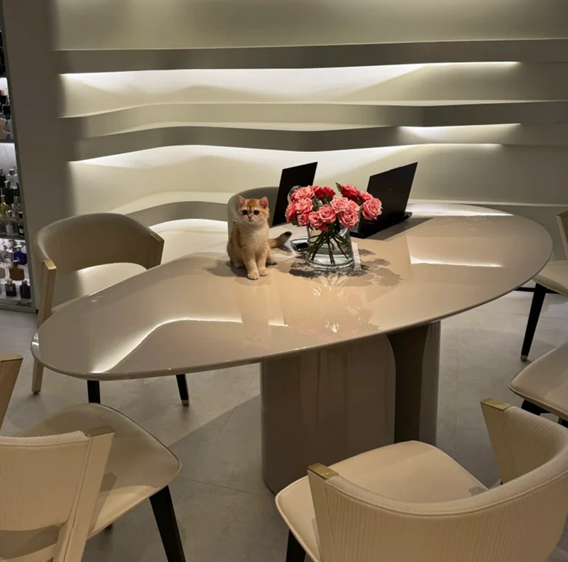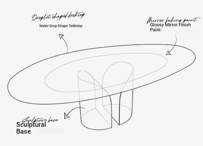 Randisha French-Inspired Creative Dining Table - Elegant Waterdrop Shaped Modern Italian Design for Spacious Homes, Perfect for Luxurious Dining Experiences