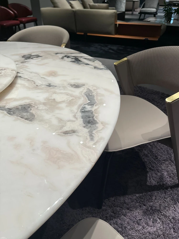 53.15 ins +70 turntable +8 chairs Fendi white luxury luxury stone dining table (fake one penalty ten)