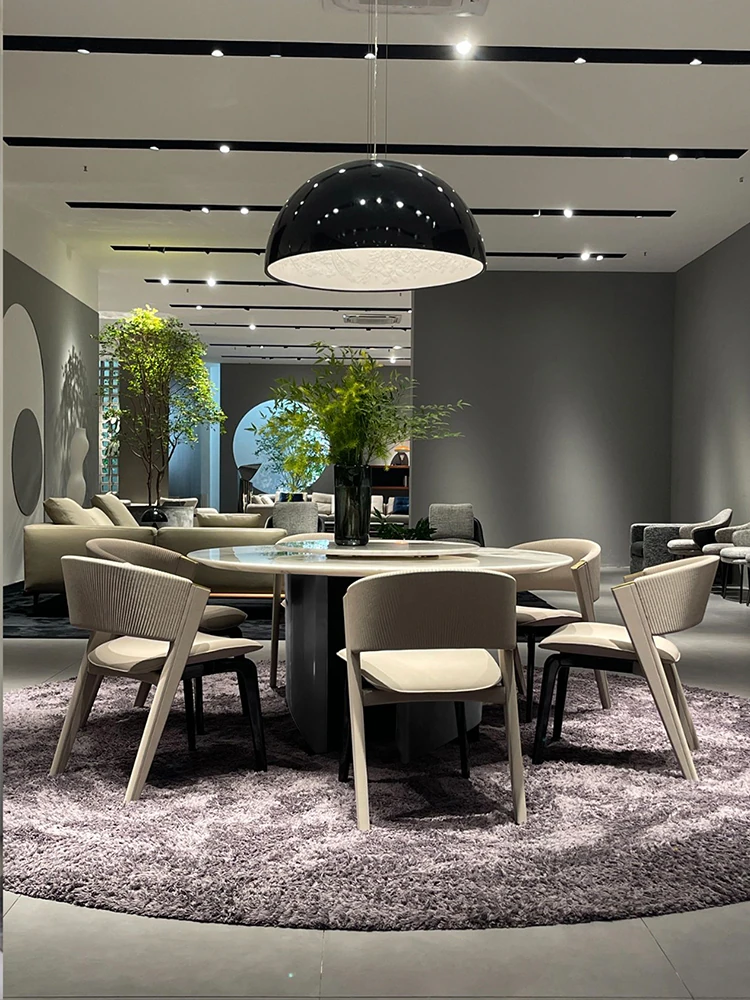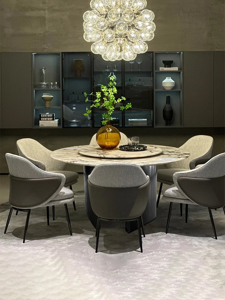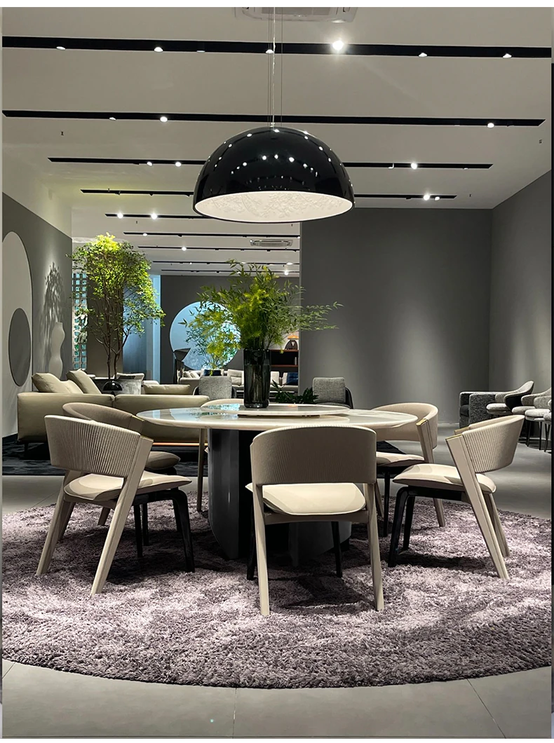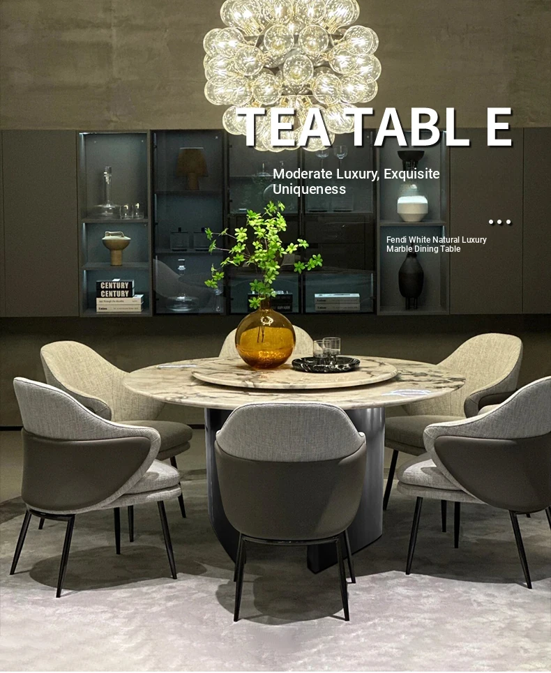 59.06 ins +80 turntable +10 chairs Fendi white luxury luxury stone dining table (fake one penalty ten)