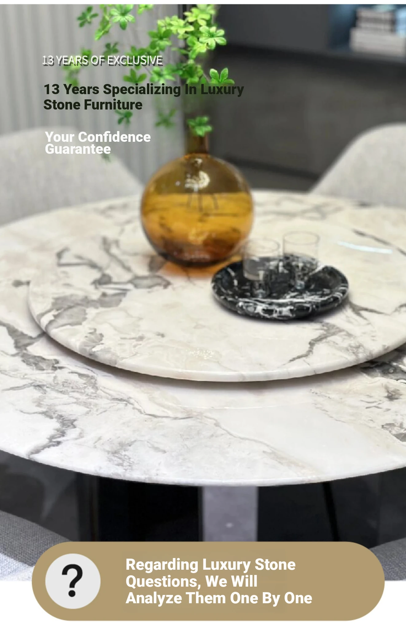 70.87 ins +90 turntable +10 chairs Fendi white luxury luxury stone dining table (fake one penalty ten)