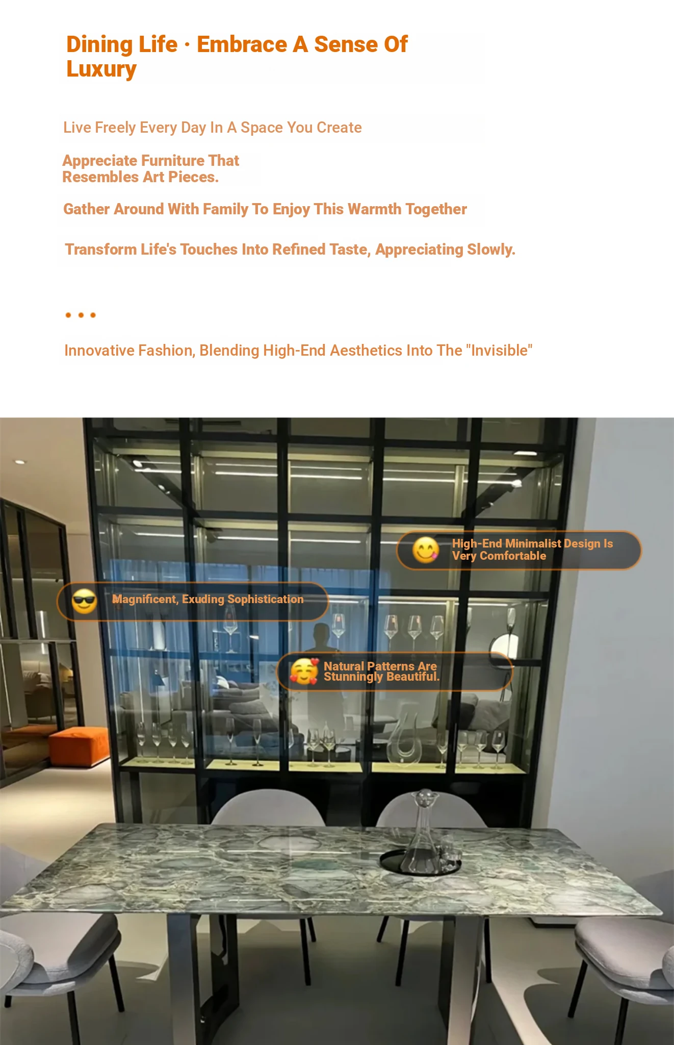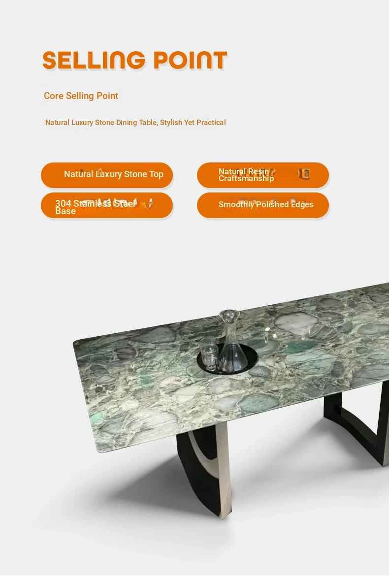 86.61in*39.37in +6 chair Emerald Luxury stone (10 for one fake)