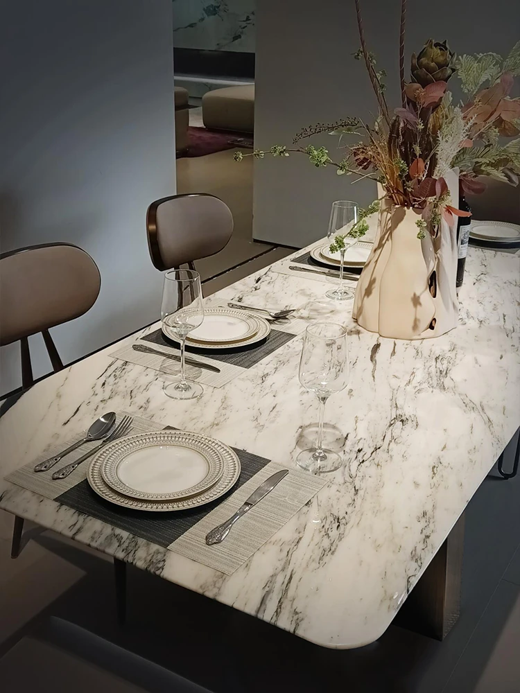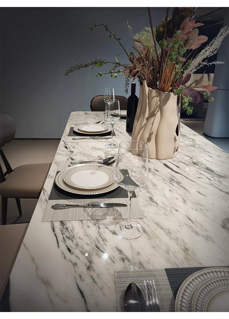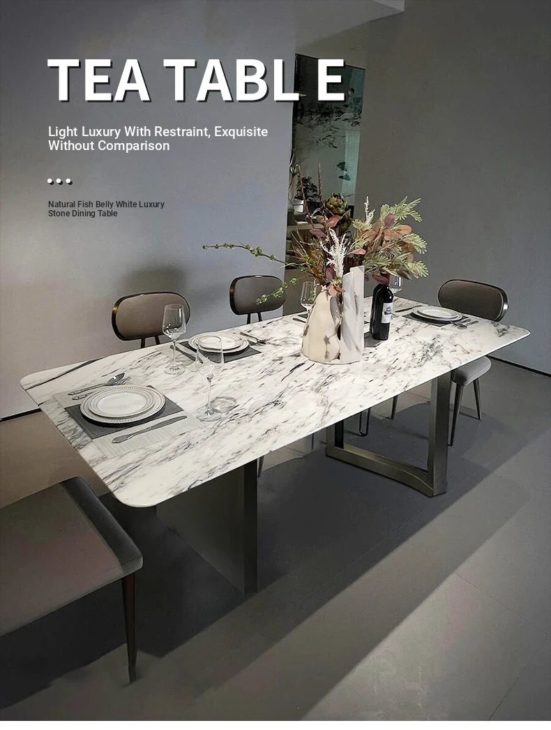 94.49in*39.37ins +12 chairs fish belly white luxury stone dining table (fake a penalty of 10)