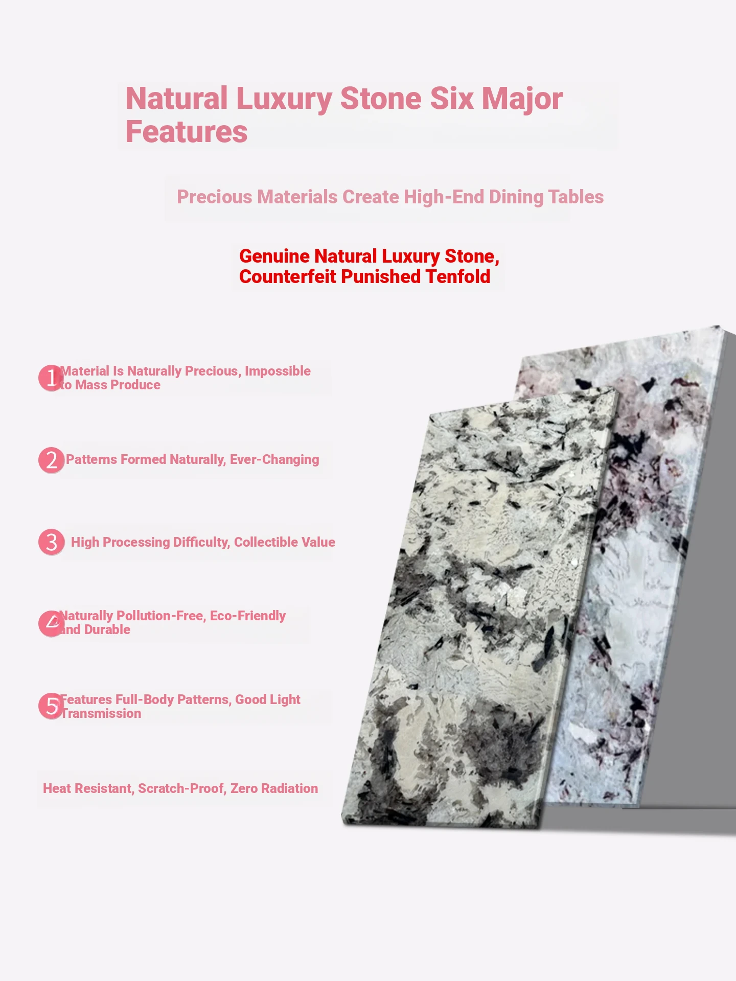 86.61in*39.37in +8 Chair Snow Mountain Flying Fox Luxury Stone Dining Table (10 for one fake)