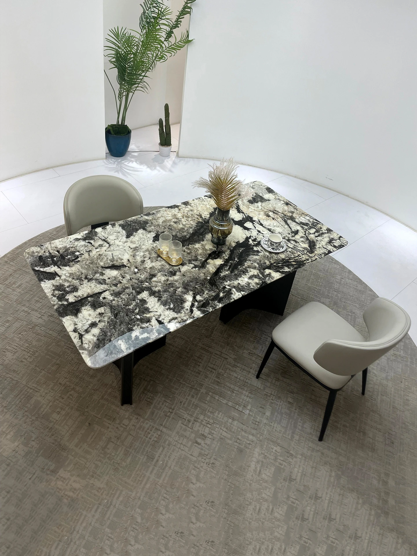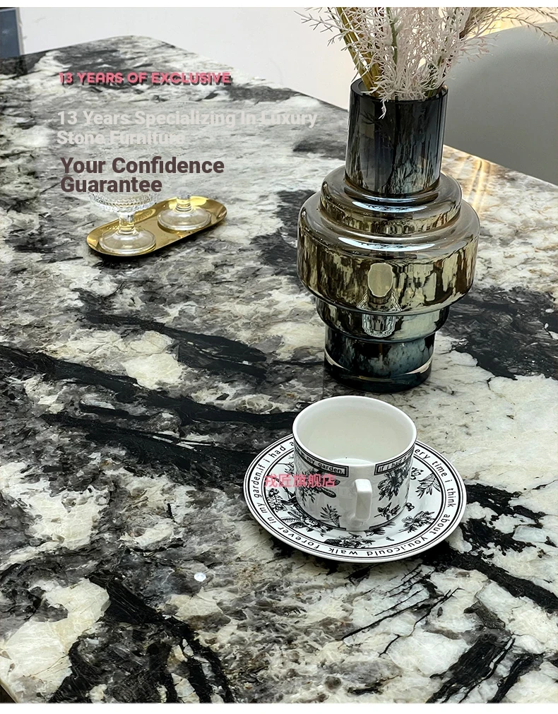 94.49in*39.37ins +6 chairs Snow Mountain Flying Fox Luxury Stone Dining Table (10 for one fake)