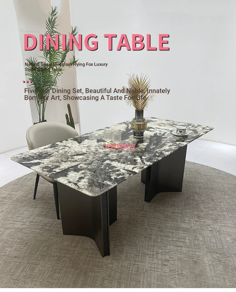 78.74in*35.43in +4 chairs Snow Mountain Flying Fox Luxury Stone Dining Table (10 for one fake)