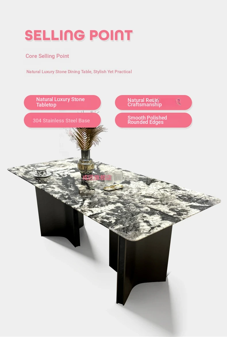 94.49in*39.37in +8 Chair Snow Mountain Flying Fox Luxury Stone Dining Table (10 for one fake)
