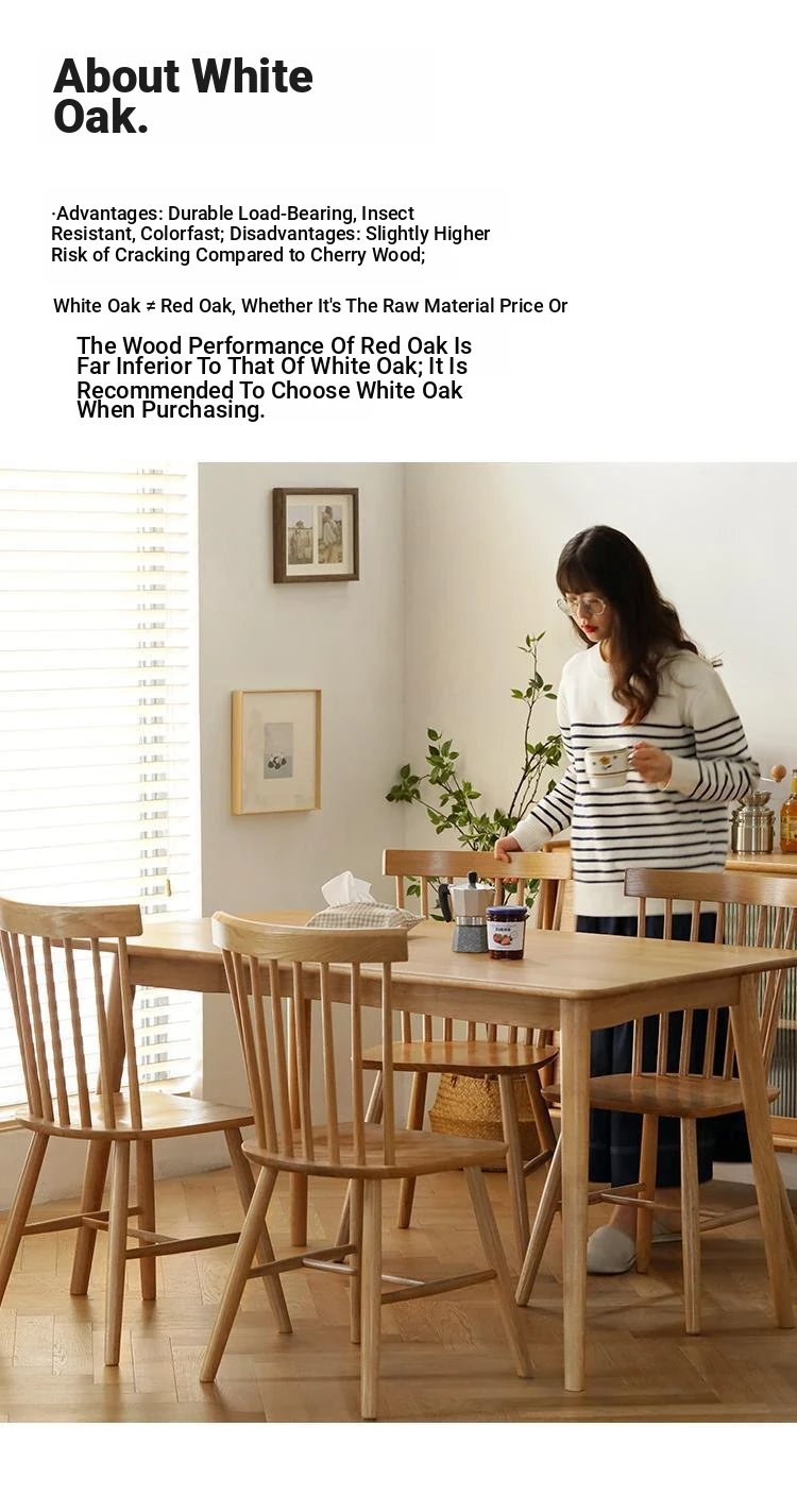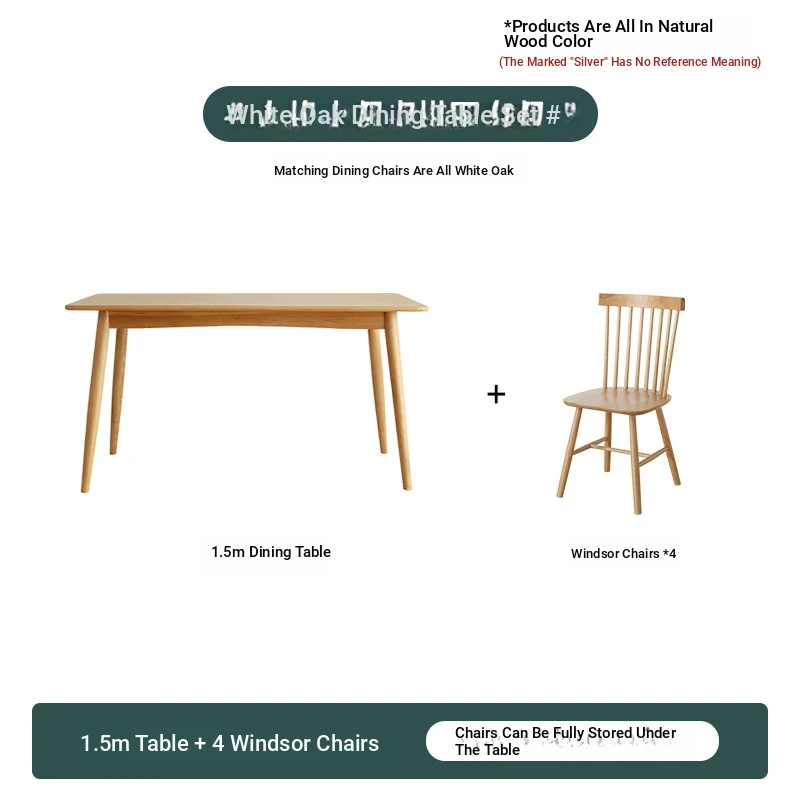 [White Oak] 47.24in +4 Windsor Chairs