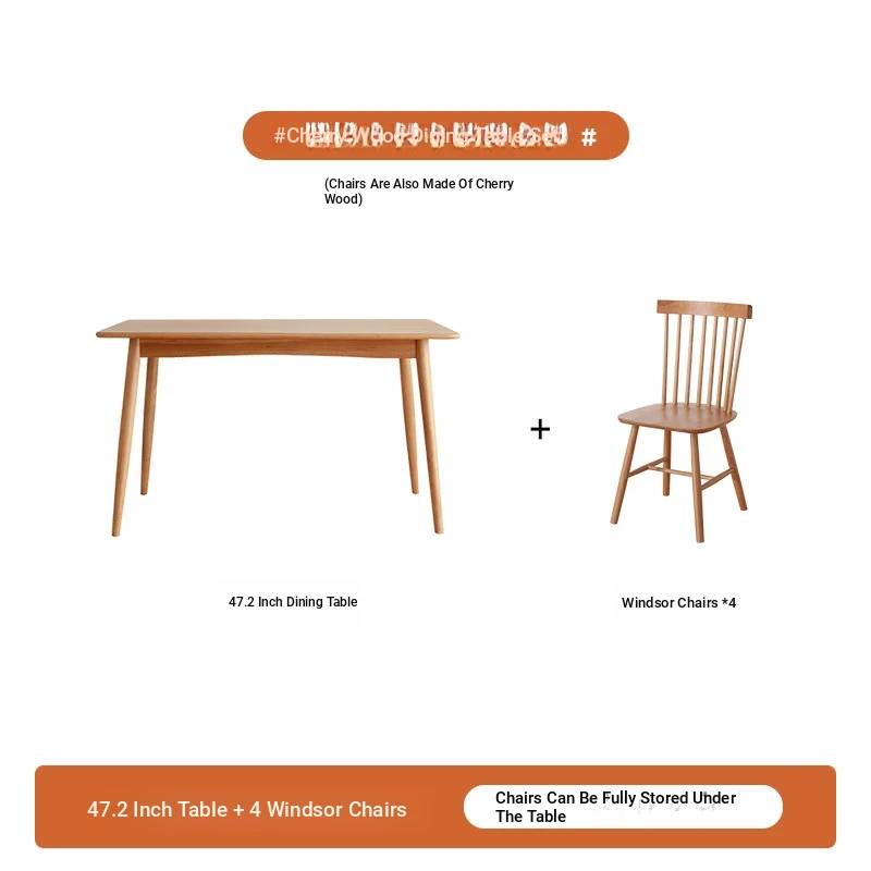 [Cherry Wood] 47.24in +4 Windsor Chairs