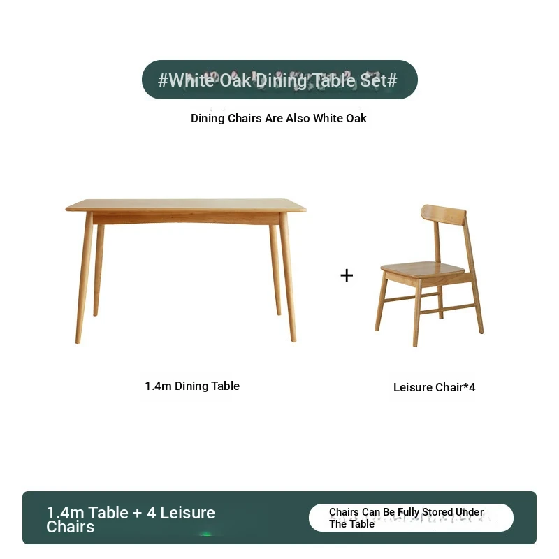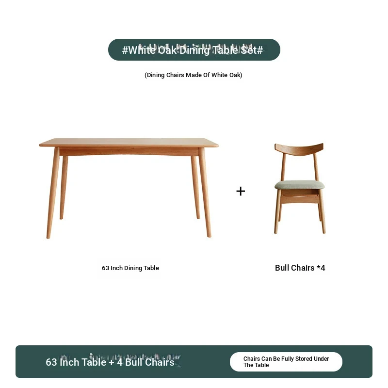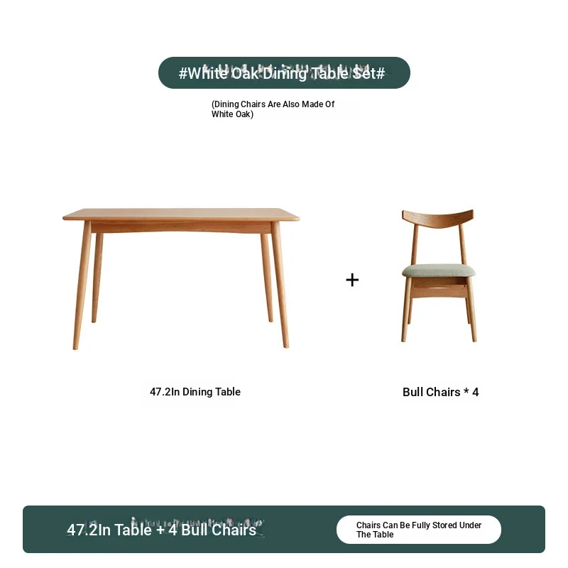 [White Oak] 47.24in +4 Long Dining Chairs