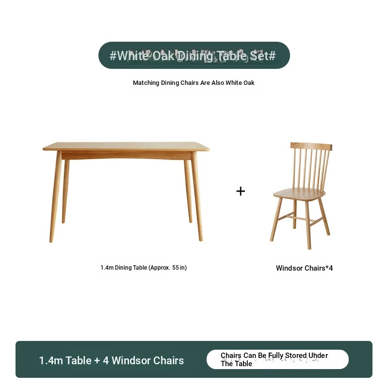 [White Oak] 55.12in +4 Windsor Chairs