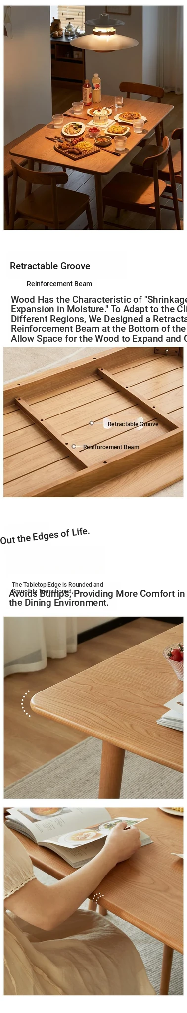 [White Oak] 55.12in +4 Long Dining Chairs