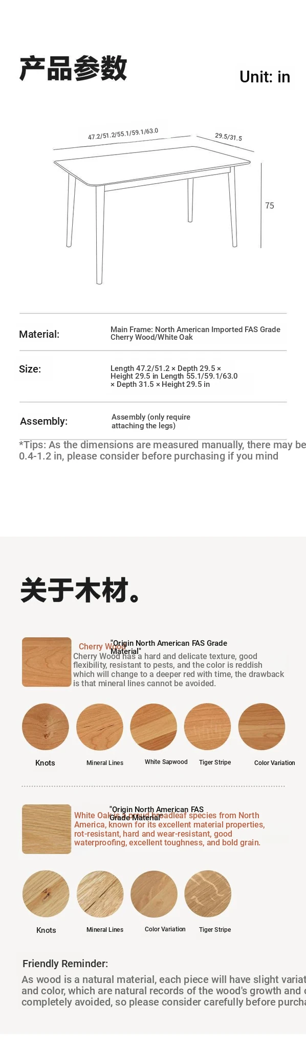 [White Oak] 55.12in +4 Free Chairs