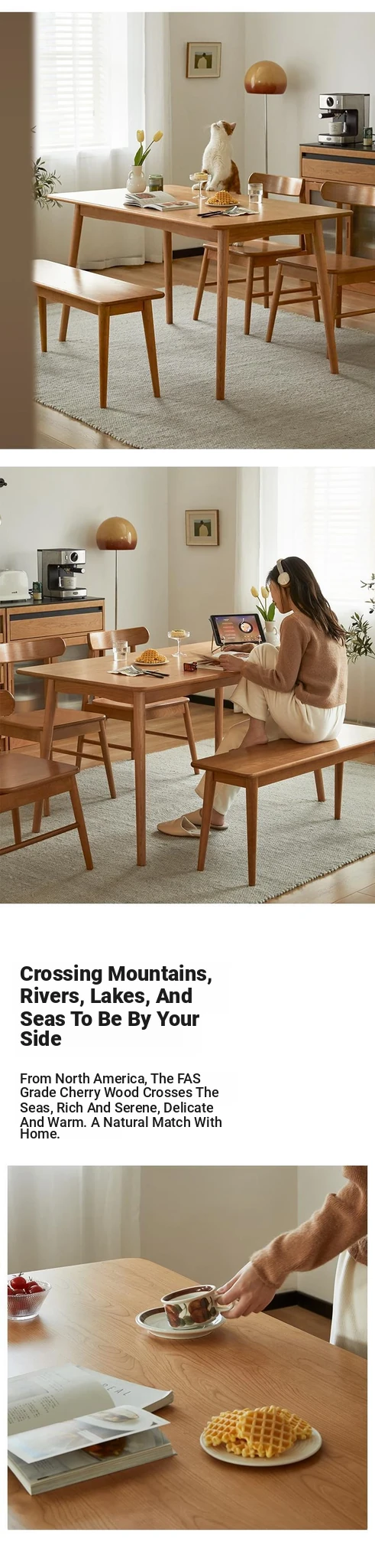 [White Oak] 47.24in +2 Free Chair +105 Bench [Gift Bench Cushion]]
