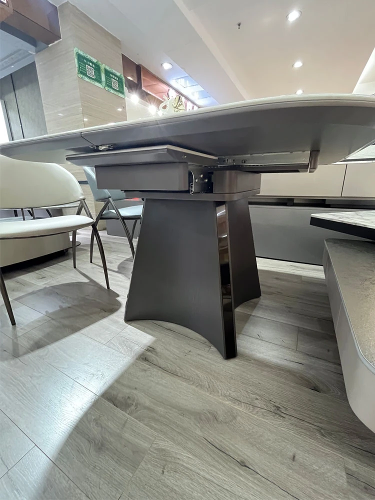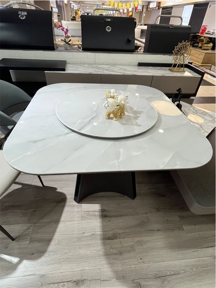 Stylish Marble Dining Table Set with Chairs – Modern Luxury Expandable Square Table with Rotating Feature for Living Room, Glossy Finish