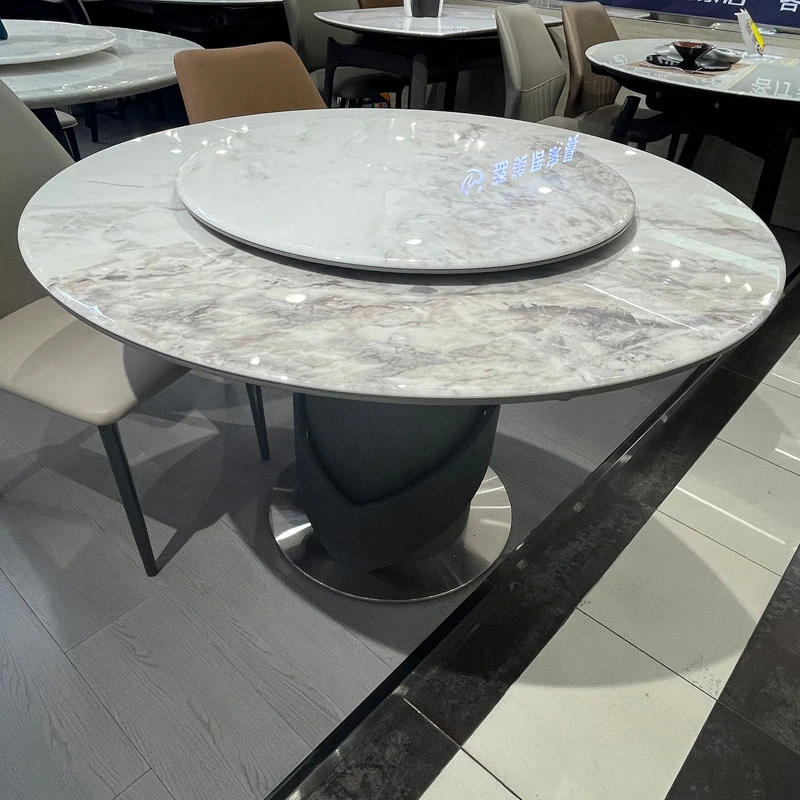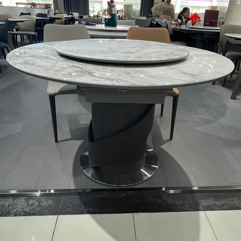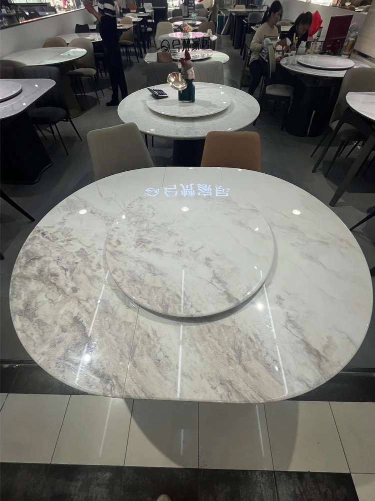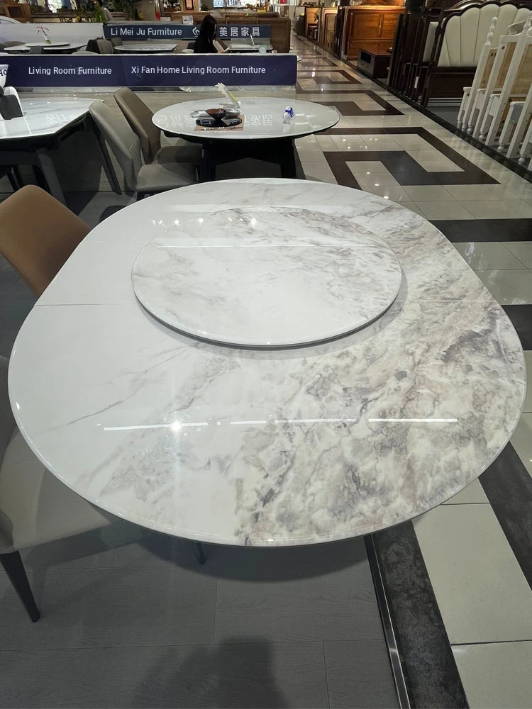 Stylish Marble Dining Table Set with Colorful Crystal Stone - Versatile Round to Oval Shape, Solid Wood, Home Use, Ultra-Crystal Two-in-One Expandable Table