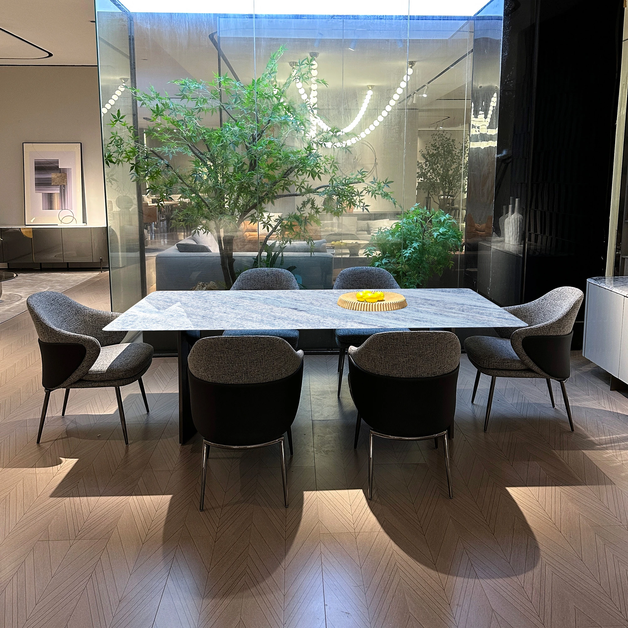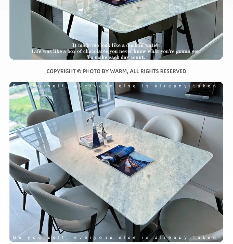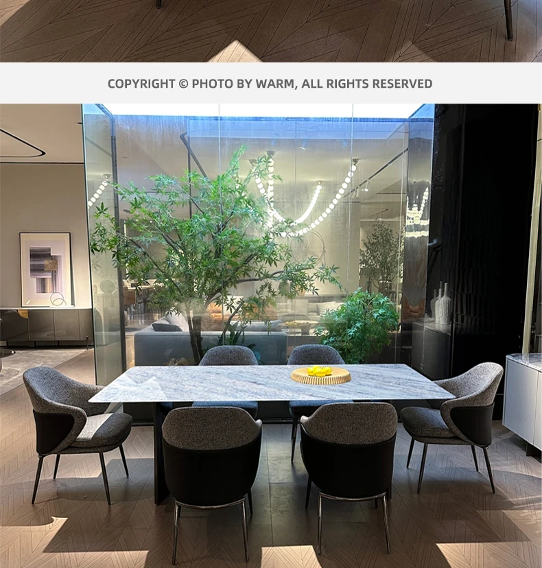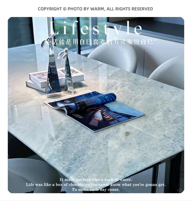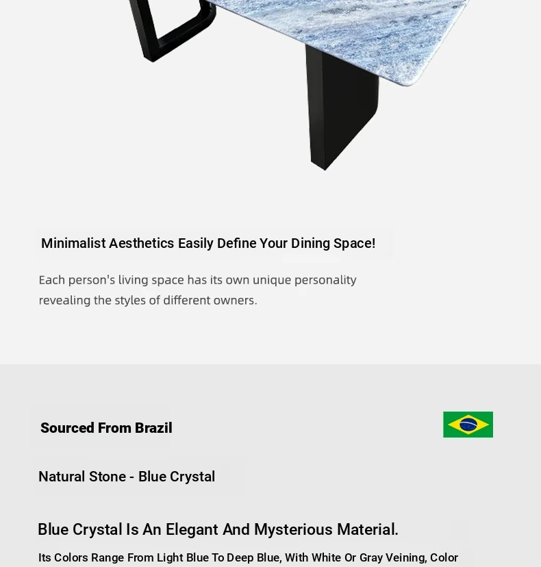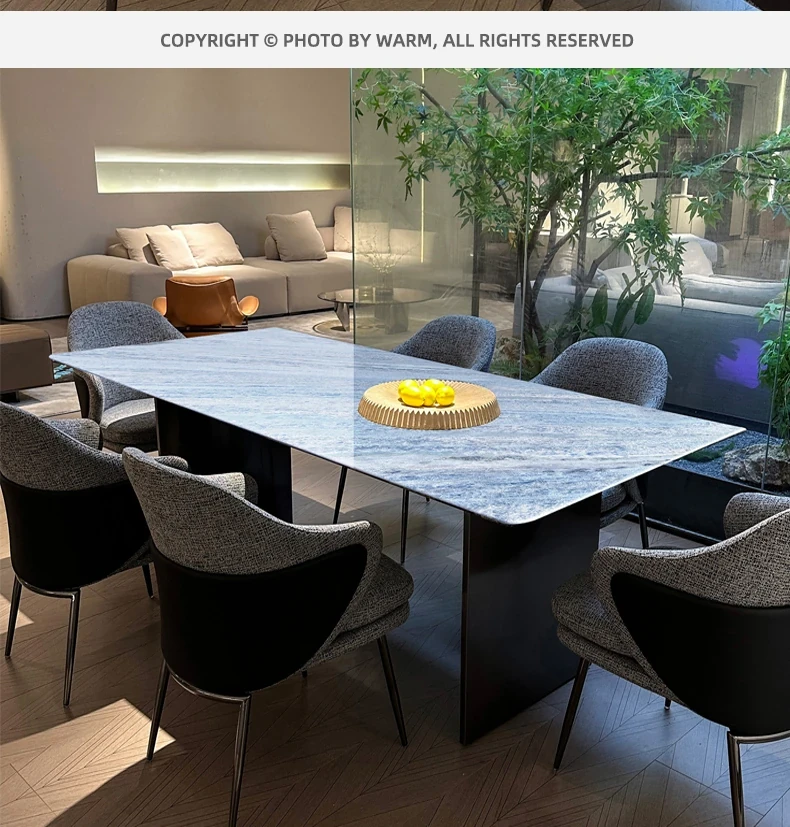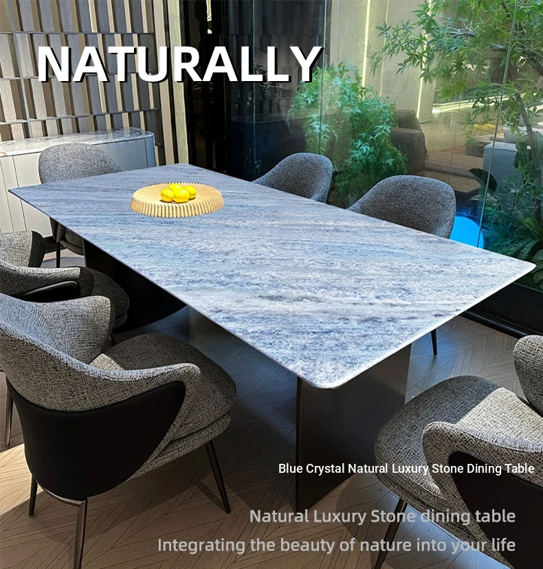 WARM Blue Crystal Luxury Stone Dining Table - Premium Imported Natural Marble Rectangular Dining Table for Villas, Exuding Sophistication and Elegance from Foshan