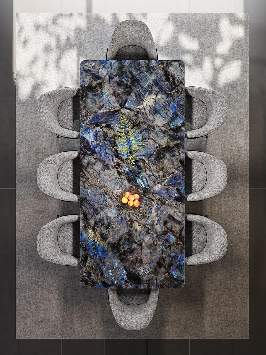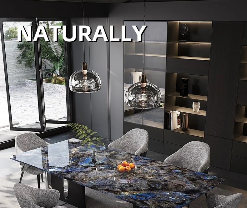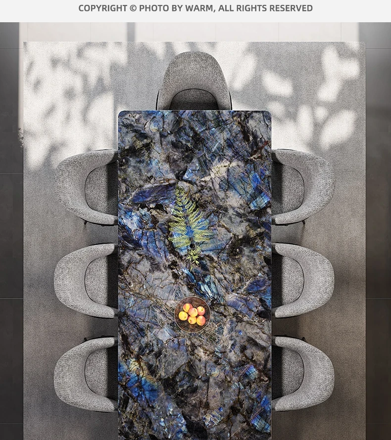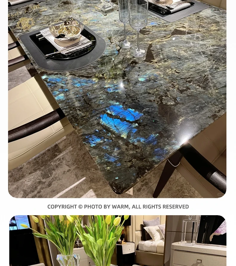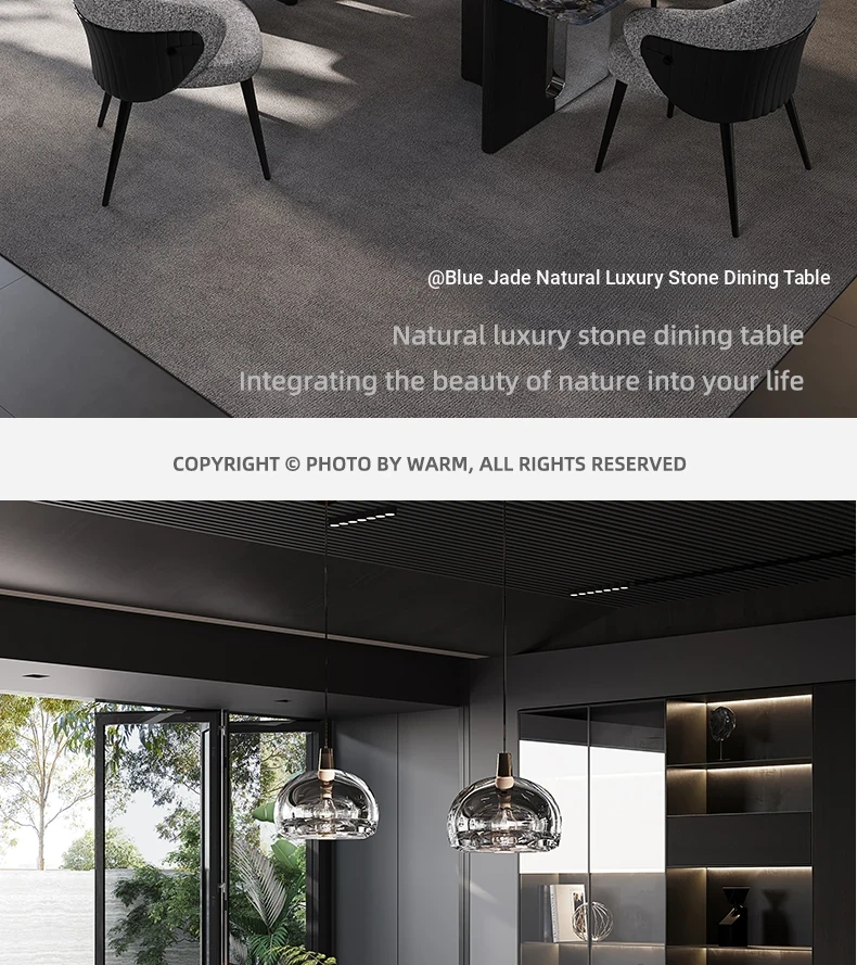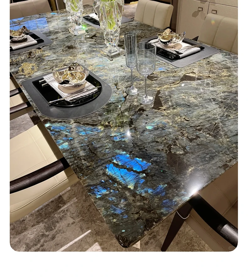 WARM Blue Jadeite Luxury Stone Dining Table - Imported Premium Natural Marble Rectangular High-End Dining Table for Villas, Foshan