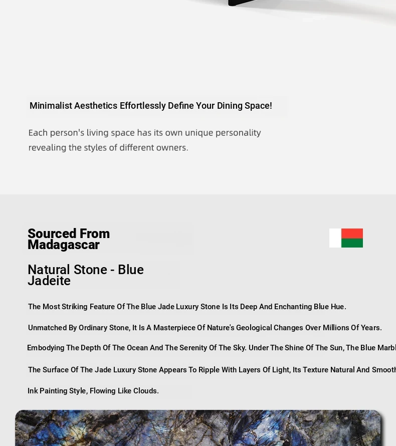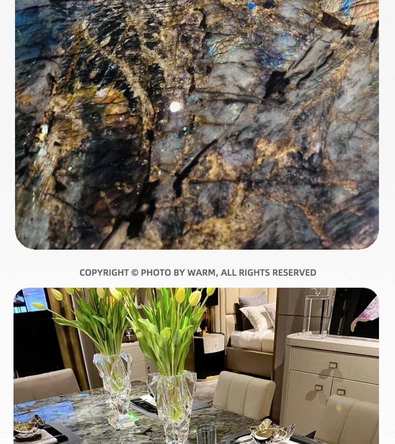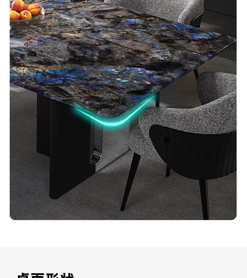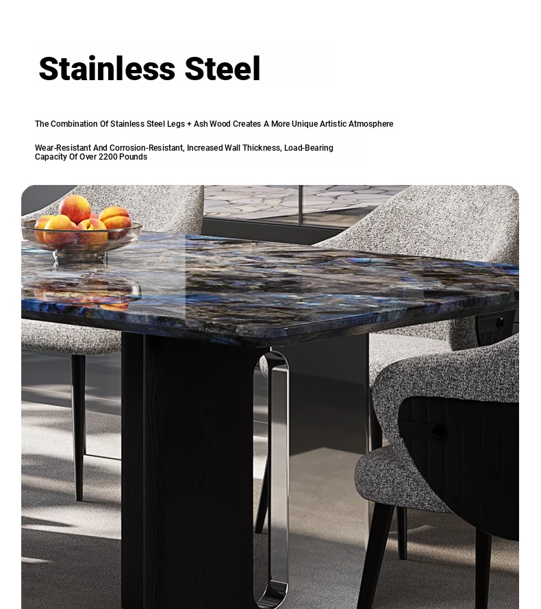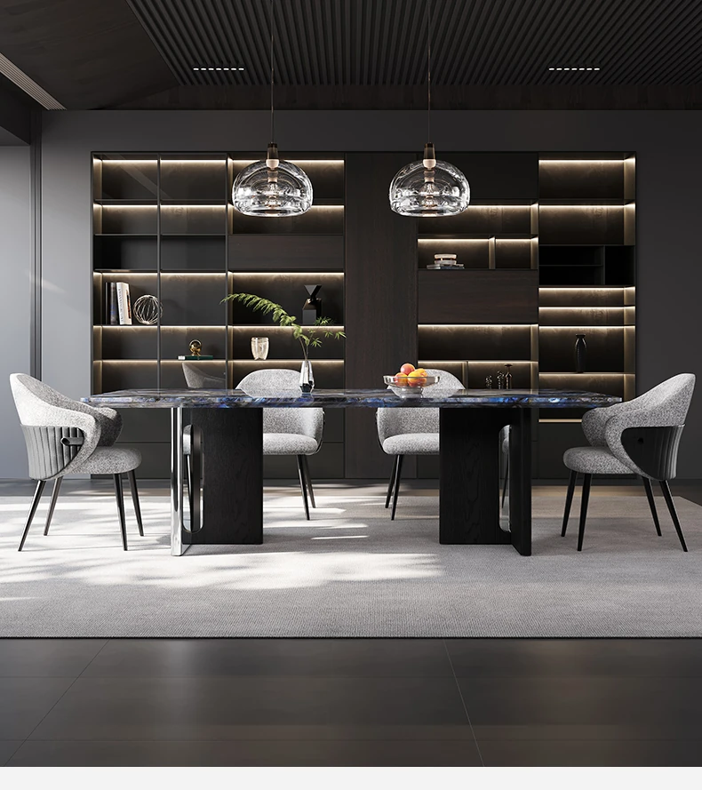 WARM Blue Jadeite Luxury Stone Dining Table - Imported Premium Natural Marble Rectangular High-End Dining Table for Villas, Foshan