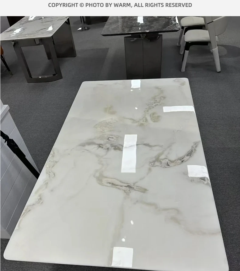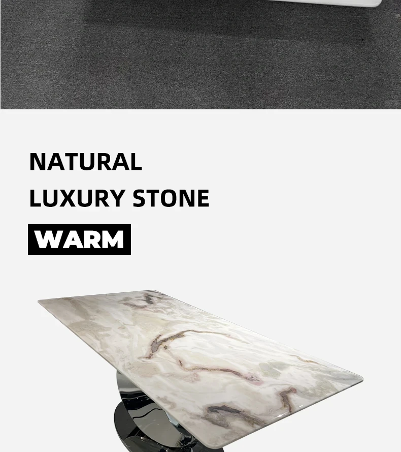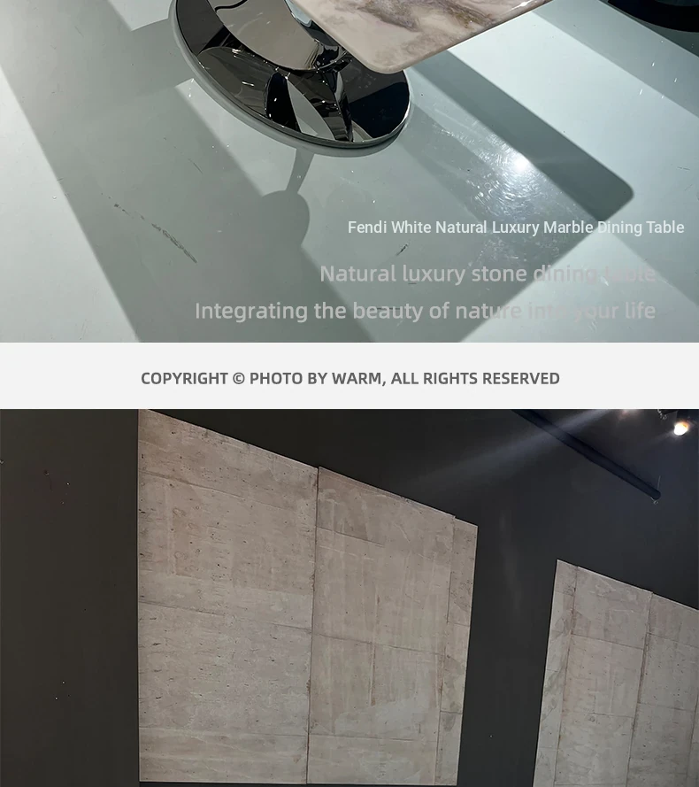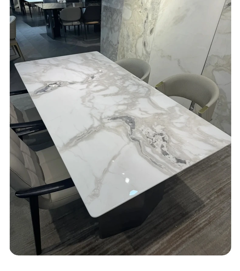 WARM Fendi White Picasso Luxury Stone Dining Table - Imported Premium Natural Marble Rectangular High-End Dining Table for Villas