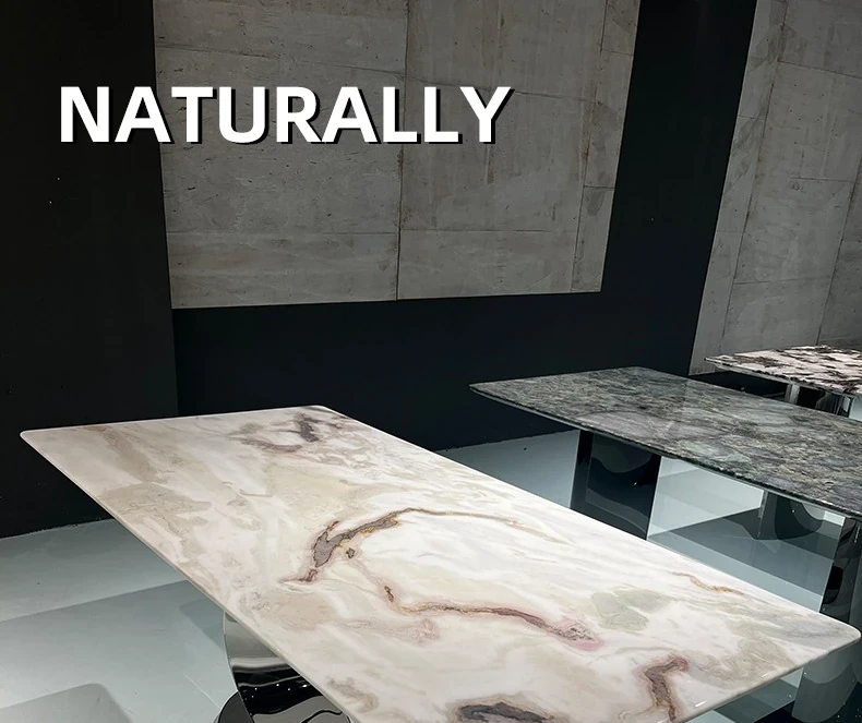 86.61in*39.37in Natural Fendi White Luxury Stone Dining Table